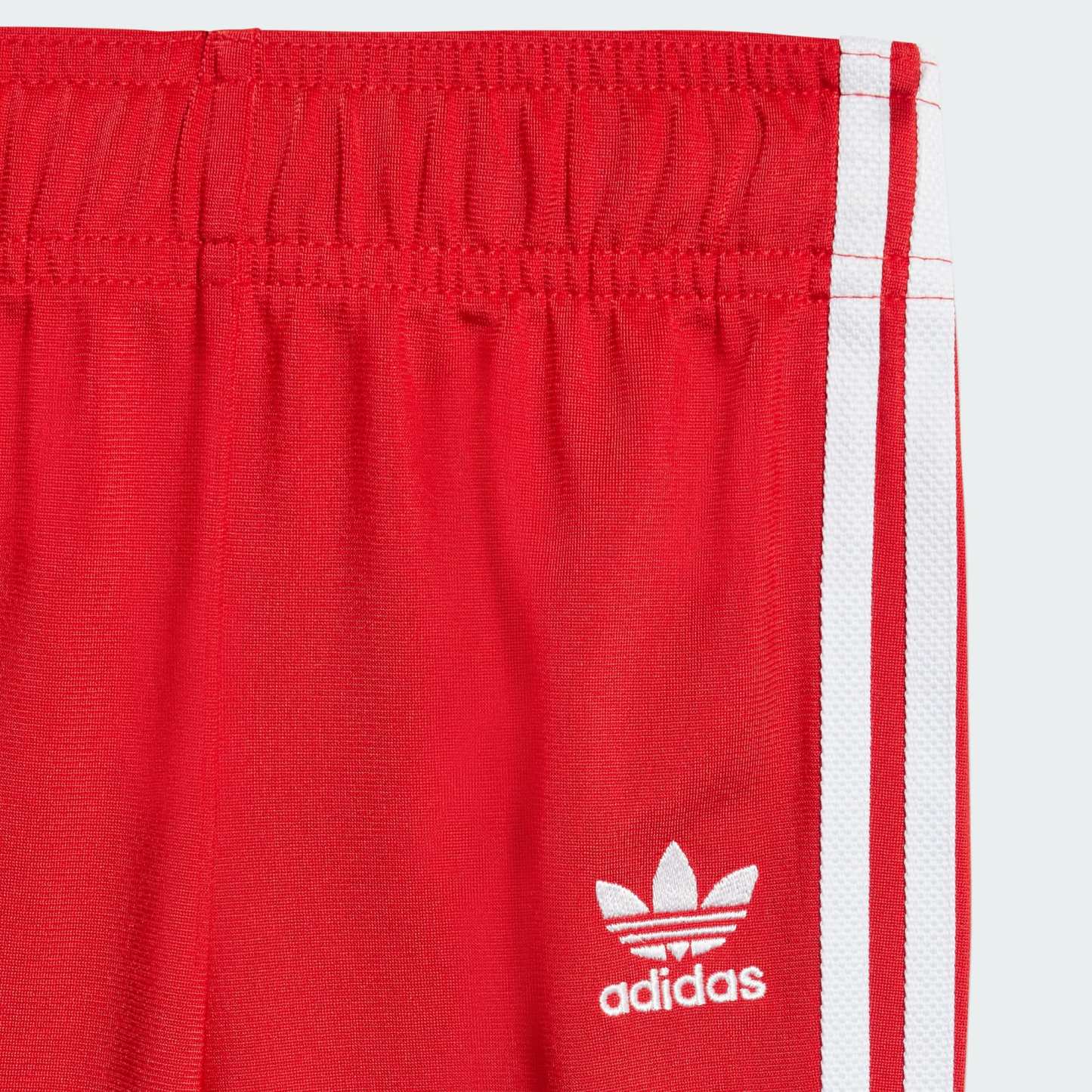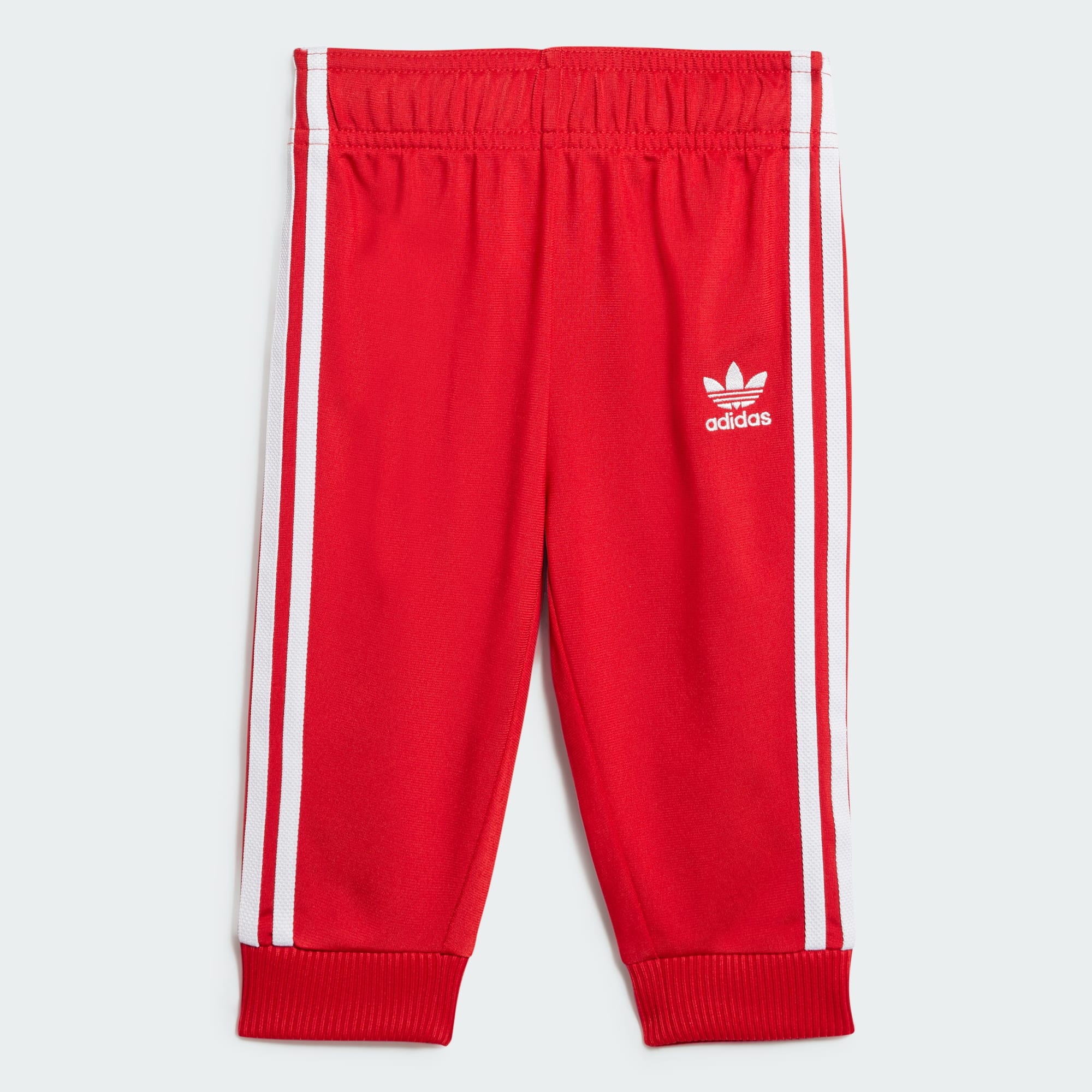 Some pieces never go out of style. This infants' adithtdas track suit reimagines a wardrobe staple for a new generation. The embroidered Trefoil and 3-Stripes down the sleeves and legs connect them to decades of athletes and game changers. In smooth tricot teams up with a loose, everyday fit, this look is poised to become their go-to for casual hangouts and adventures. When heritage-inspired style is this comfortable, the only thing left is for them to make their own iconic moments.This product is made with 100% recycled materials. By reusing materials that have already been created, we help to reduce waste and our reliance on finite resources and reduce the footprint of the products we make.
