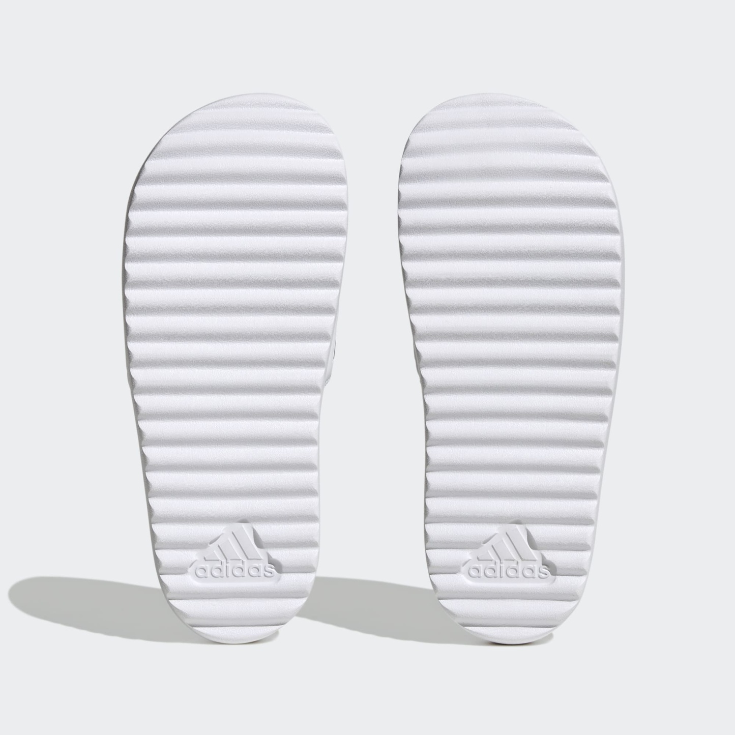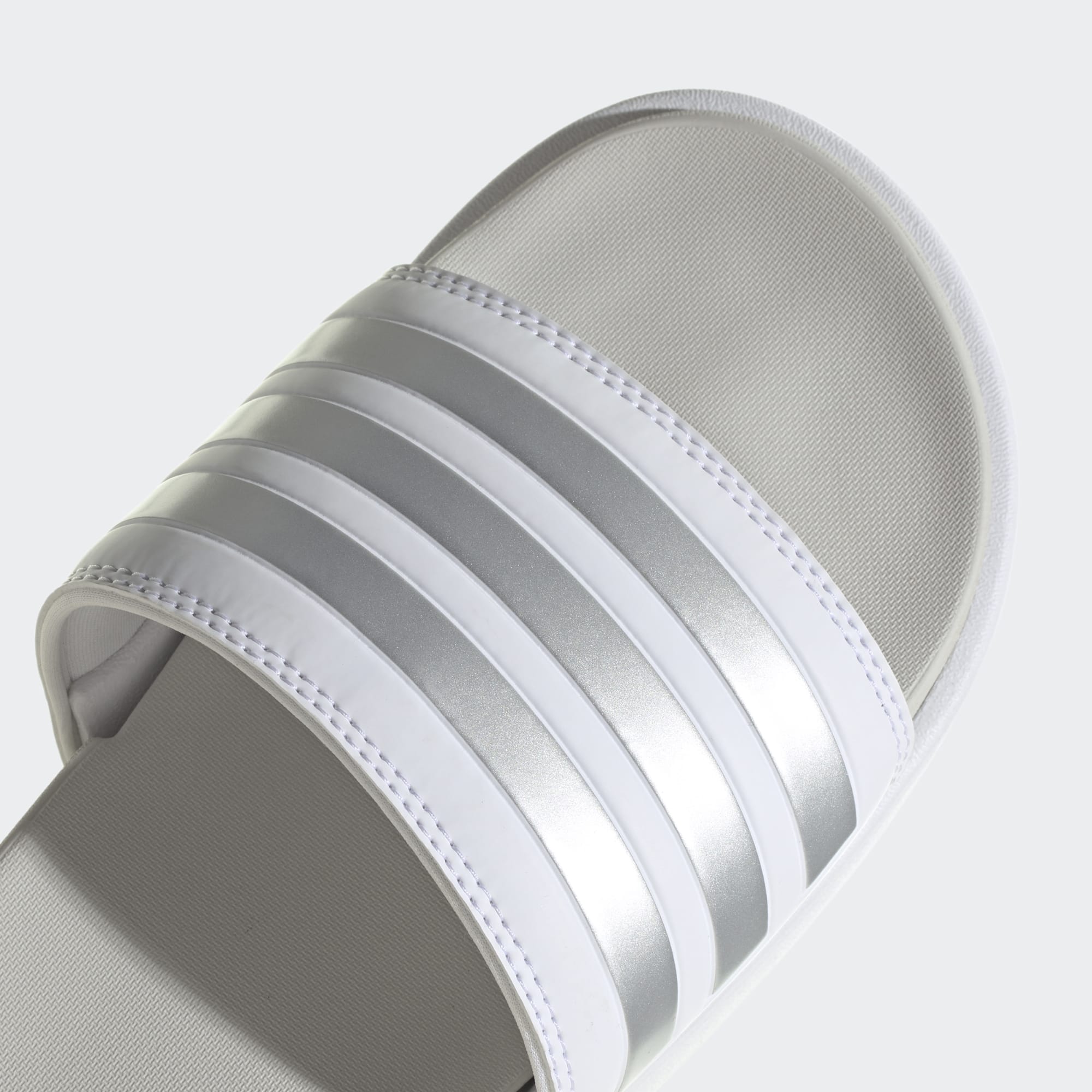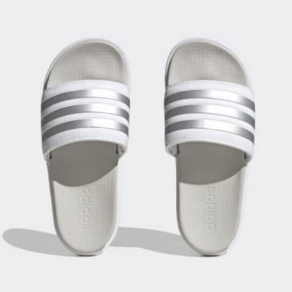 The coolest way to show off your pedicure. These adithtdas platform slides look at home by the pool and in the city with 3-Stripes wrapped around the smooth bandage uppers. These sandals have a contoured footbed and a cushioned EVA outsole for maximum comfort.