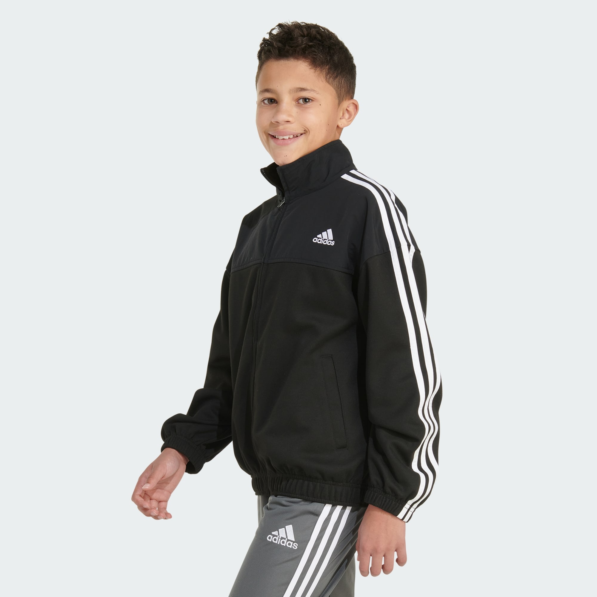 As long as the 3-Stripes are showing, it's all good. This kids' adithtdas full-zip jacket combines bold sport identity with everyday wearability. It's made from smooth doubleknit fabric with a loose fit to give them room to move while keeping them covered.