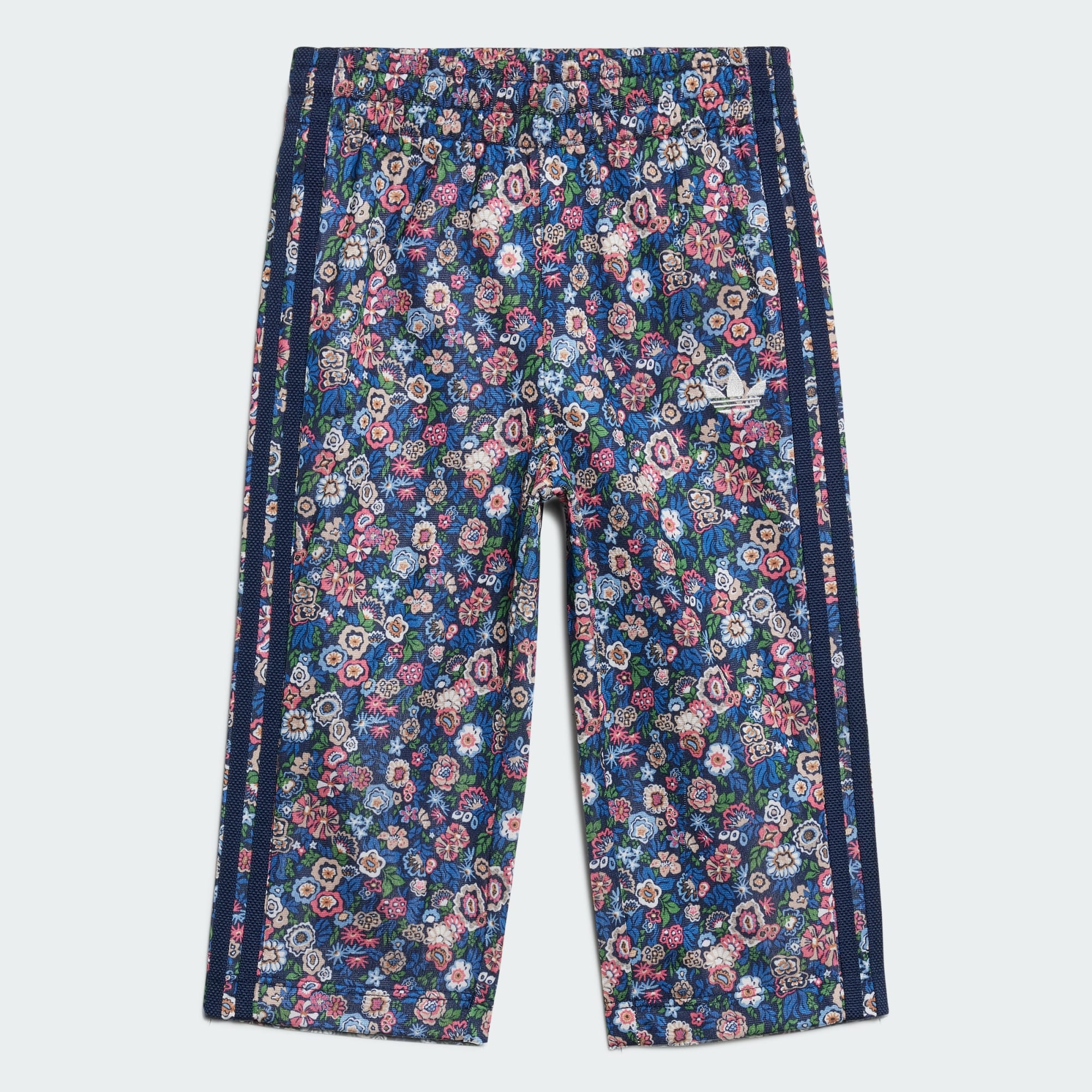 Featuring hand-painted artwork from Liberty London and brought to life by adithtdas Originals, this toddlers' track suit gives little ones a fun, floral look. Made from soft tricot fabric, the top zips up and has ribbed cuffs to keep the sleeves from riding up. The track pants are stretchy around the waist for easy on and off and a comfy all-around feel. The allover floral print gives the classic Firebird track suit a fun, colorful look that's finished with a Trefoil on the chest and 3-Stripes down the sleeves and legs.