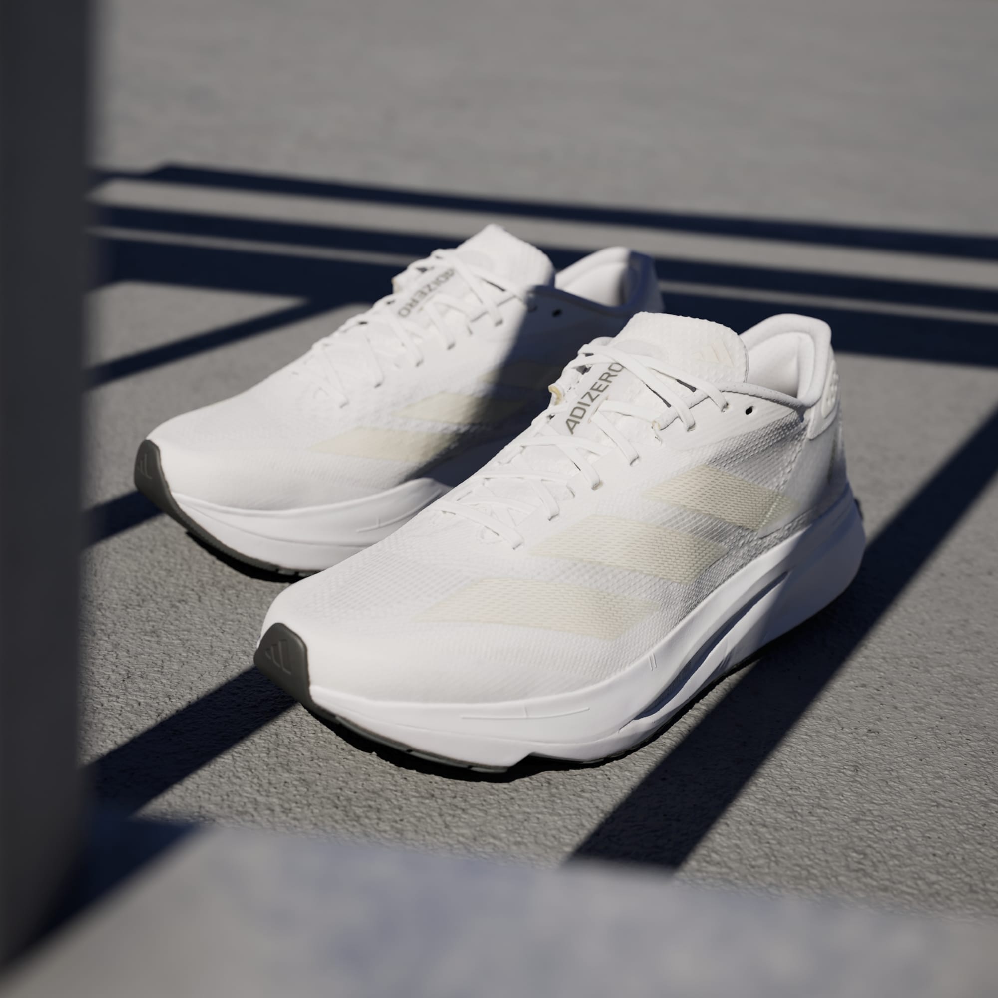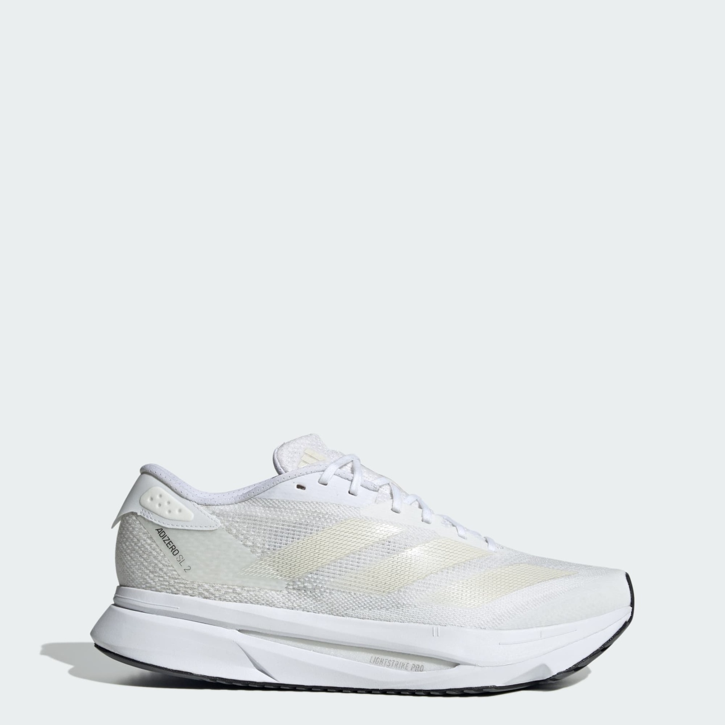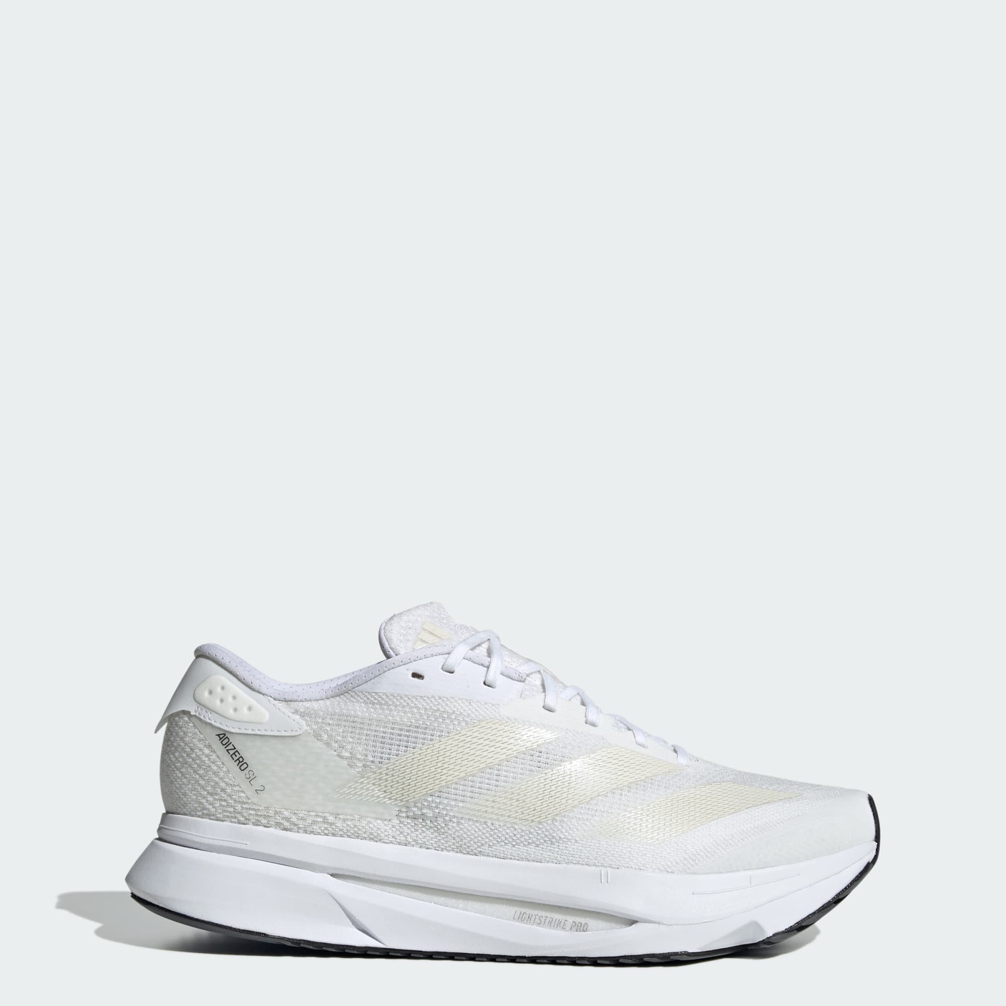 Experience the thrill of breaking personal records in a shoe that's as fast as you are. These adithtdas Adizero running shoes are equipped with responsive Lightstrike Pro, super-light cushioning that delivers energy return for next-level speed. The engineered mesh upper provides breathability and targeted support where you need it most to keep you flying to the finish. This product features at least 20% recycled materials. By reusing materials that have already been created, we help to reduce waste and our reliance on finite resources and reduce the footprint of the products we make.