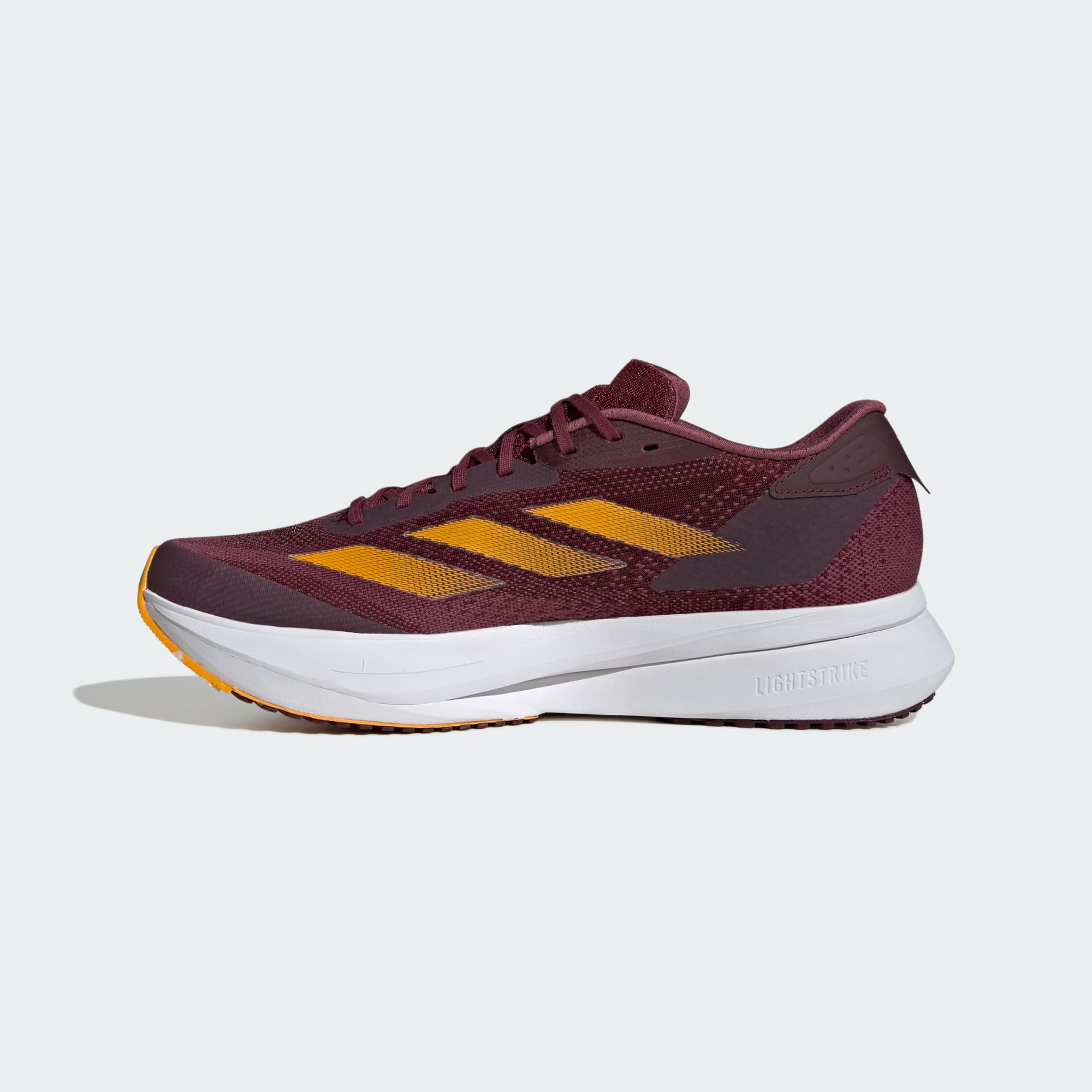 Whether you're chasing a PR or just clocking your daily miles, these adithtdas running shoes are designed to help you go fast. They ride on a soft and resilient Lightstrike Pro midsole that keeps you feeling supported, but not weighed down. The lightweight mesh upper helps channel airflow to your feet.