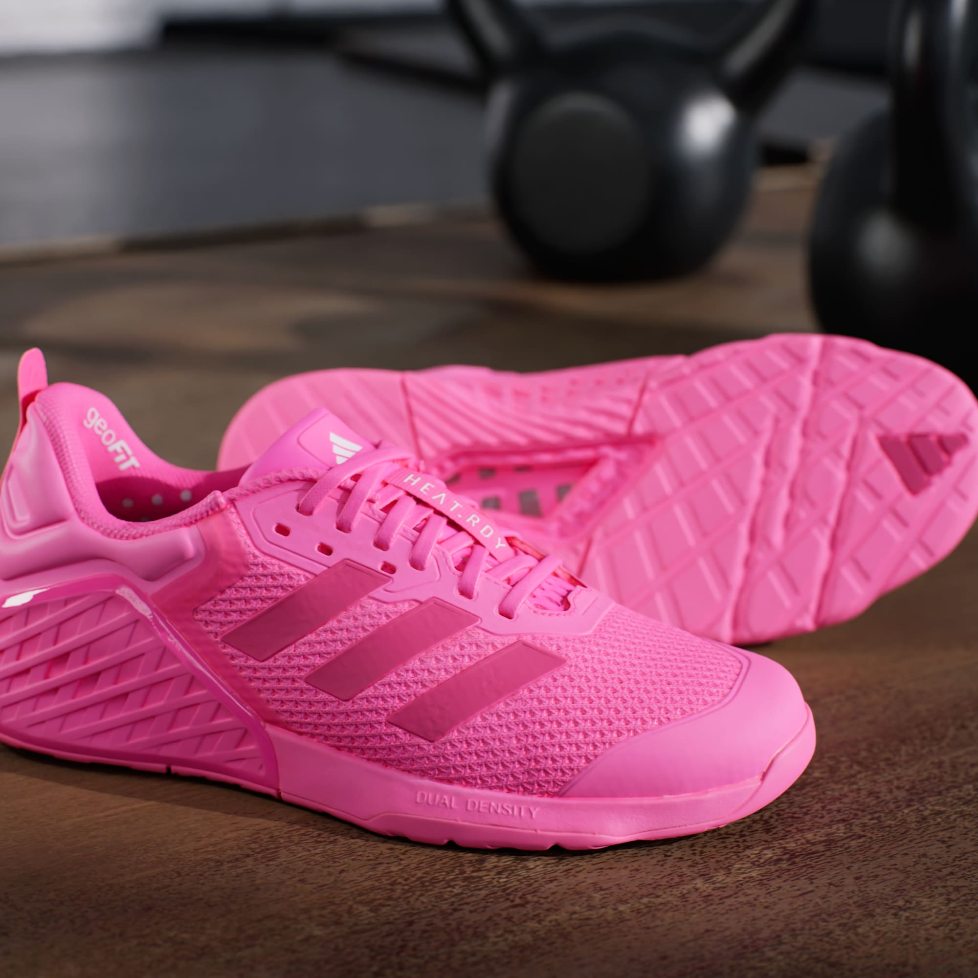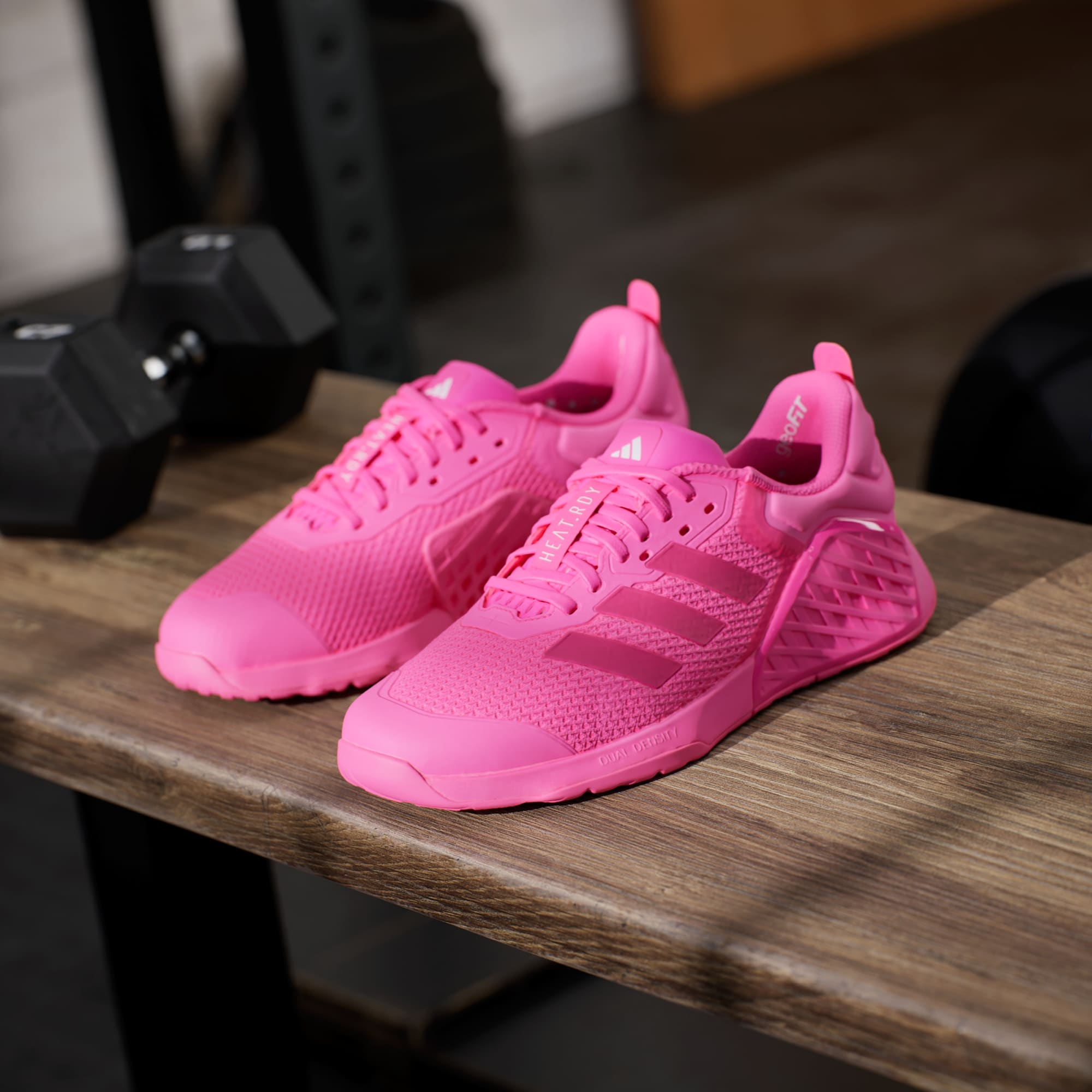 Whether the workout calls for power or endurance, these adithtdas shoes offer the support you need for strength training. A dual-density midsole keeps feet stable through heavy lifts, while remaining flexible enough for cardio. HEAT.RDY and a breathable upper work overtime to beat the heat, so you can focus on the reps. A wide fit accommodates swelling feet, and an Adiwear outsole grips the floor to drive performance. This product features at least 20% recycled materials. By reusing materials that have already been created, we help to reduce waste and our reliance on finite resources and reduce the footprint of the products we make.
