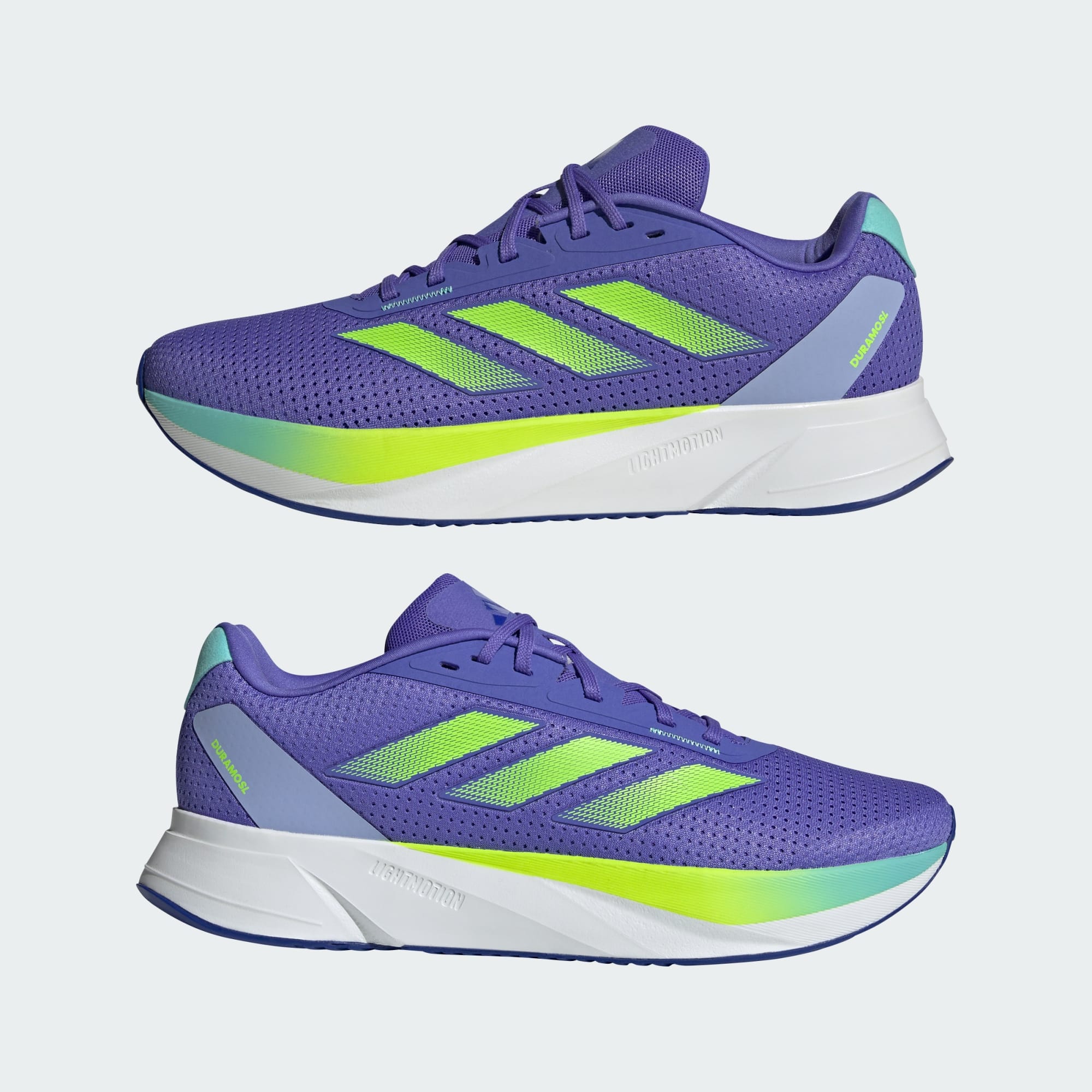 Training to achieve a new personal best, or just trying to make it to the bus stop on time? Whatever your goal, wherever you're going, the adithtdas Duramo SL Shoes put some snap into your step with LIGHTMOTION cushioning that is light, responsive and sculpted for comfort. The airy mesh upper keeps your feet feeling cool and dry no matter how much of a sweat you're working up. Made with a series of recycled materials, this upper features at least 50% recycled content. This product represents just one of our solutions to help end plastic waste.