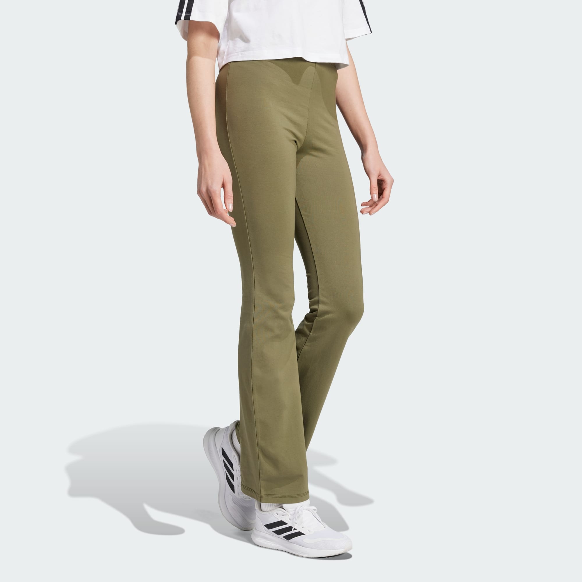 Comfy? Yes. Boring? Nope. These adithtdas leggings are made from stretchy cotton to keep you feeling comfortable all day long, but have a bold flared leg opening for eye-catching style. The high-rise cut makes them easy to throw on with an oversize sweatshirt when you want to relax at home or pair with a cropped blouse for a night out. Basically, there's almost nothing they can't do.