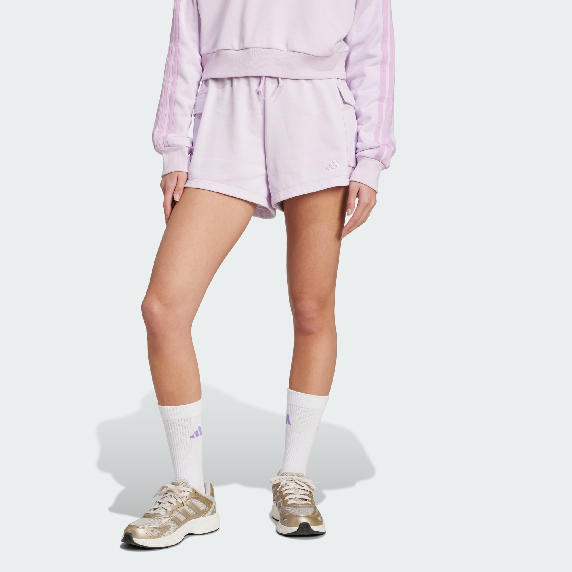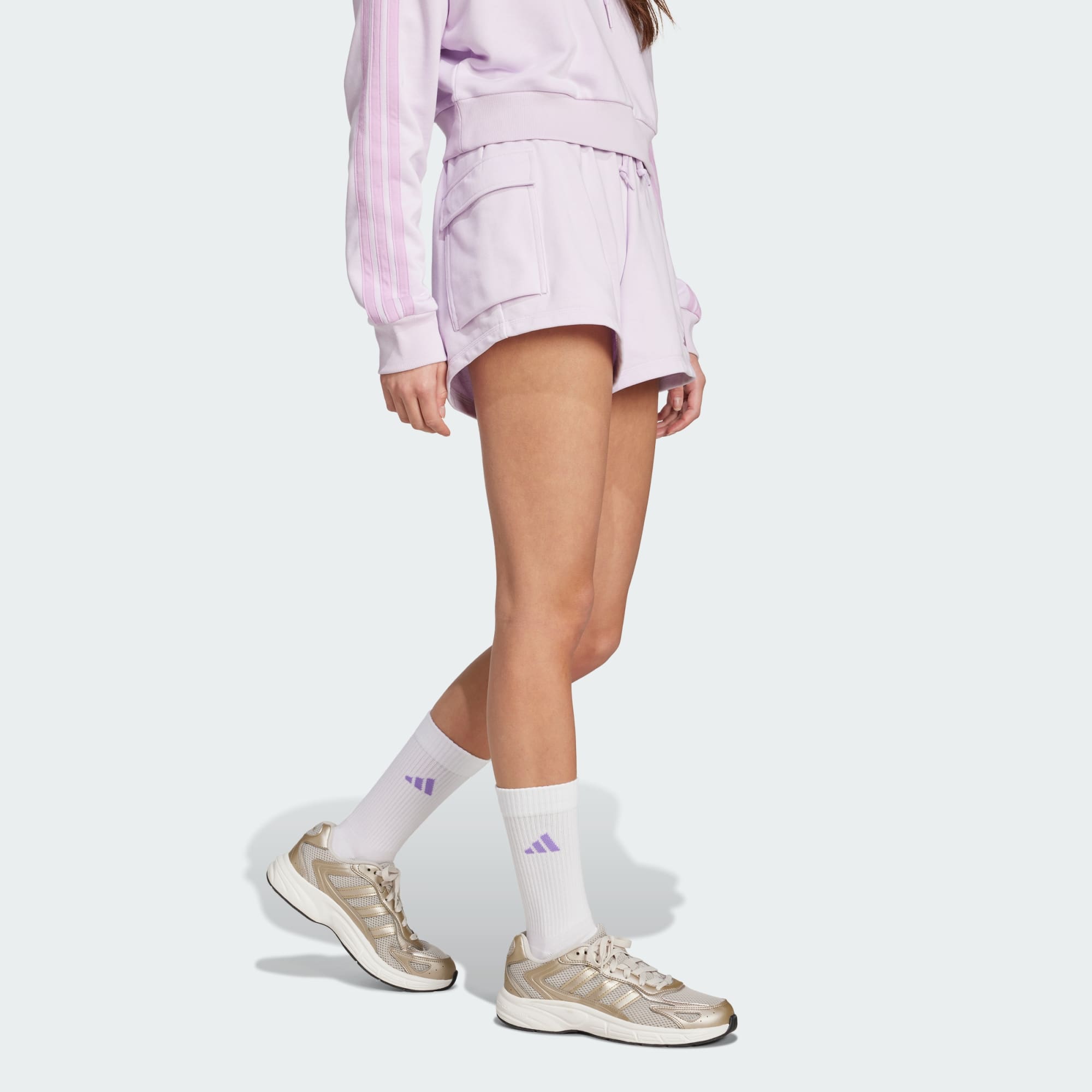 Made for relaxing, these adithtdas shorts are all about easy comfort. Their soft French terry fabric is perfect for lounging or running errands. Cargo pockets provide space for essentials so you can keep your hands free. Pair them with your favorite tee or tank for a casual look that takes you from couch to coffee shop and back again.By choosing recycled, we are able to reuse materials that have already been created, which helps to reduce waste. Renewable materials choices will help us to remove our reliance on finite resources. Our products made with a blend of recycled and renewable materials feature at least 70% total of these materials.