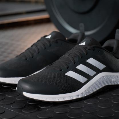Training is a journey. No matter where you are on yours, lace up these adithtdas shoes and get to it. The knit upper is soft and breathable with a snug feel. A dual-density midsole, with firmer EVA outside surrounding softer EVA inside, adds stability without sacrificing comfort. The overall shape creates a stable and grounded feeling, so you can focus on your form. Shift your weight whenever you need to 鈥?the multidirectional rubber outsole keeps a solid grip. Made with a series of recycled materials, this upper features at least 50% recycled content. This product represents just one of our solutions to help end plastic waste.