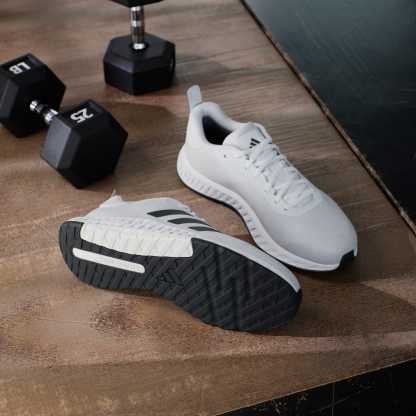 Training is a journey. No matter where you are on yours, lace up these adithtdas shoes and get to it. The knit upper is soft and breathable with a snug feel. A dual-density midsole, with firmer EVA outside surrounding softer EVA inside, adds stability without sacrificing comfort. The overall shape creates a stable and grounded feeling, so you can focus on your form. Shift your weight whenever you need to 鈥?the multidirectional rubber outsole keeps a solid grip. Made with a series of recycled materials, this upper features at least 50% recycled content. This product represents just one of our solutions to help end plastic waste.