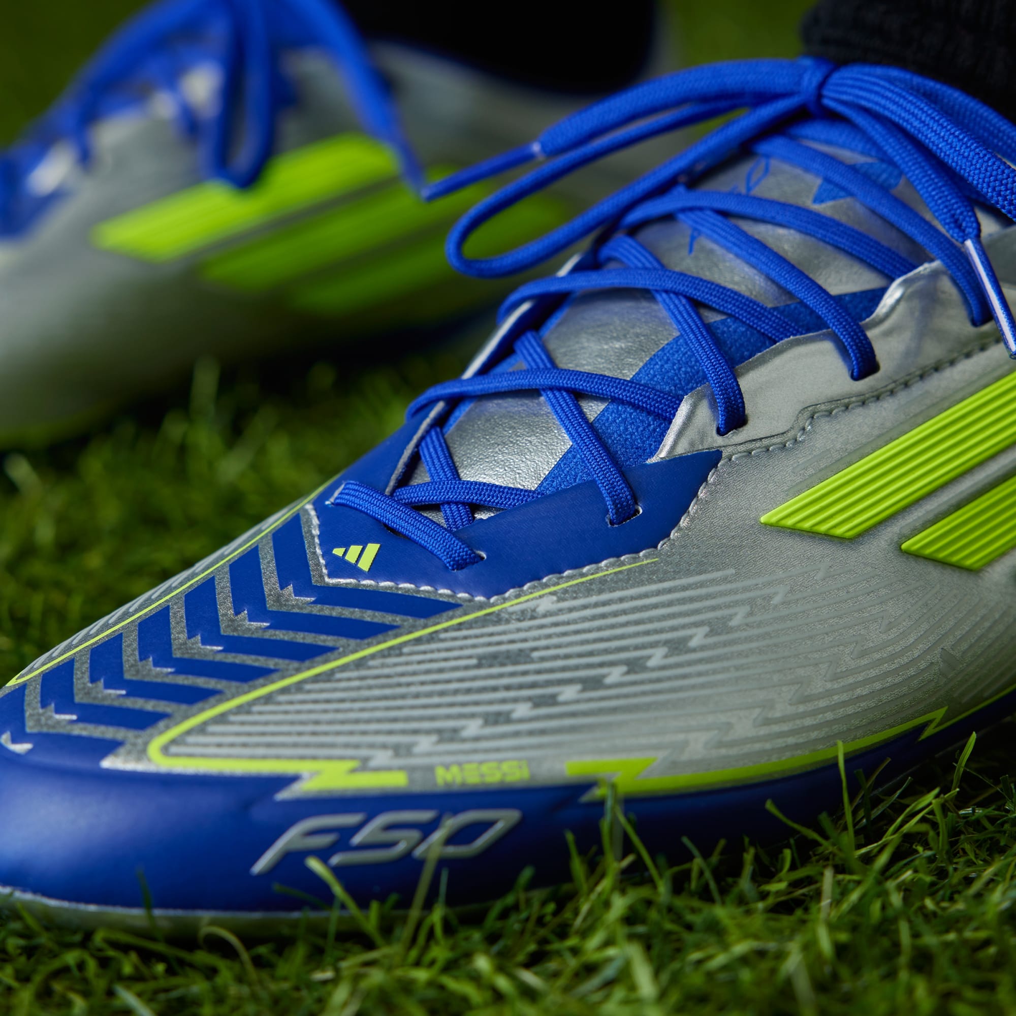 Make Messi moves in F50 firm ground cleats made in part with recycled materials.