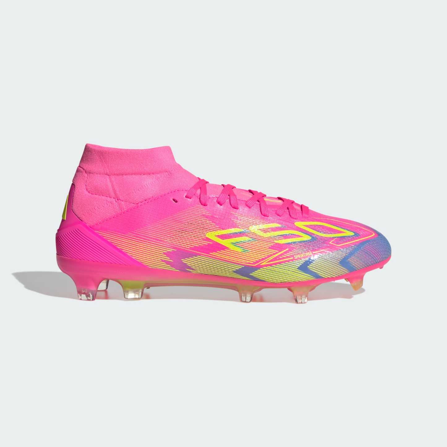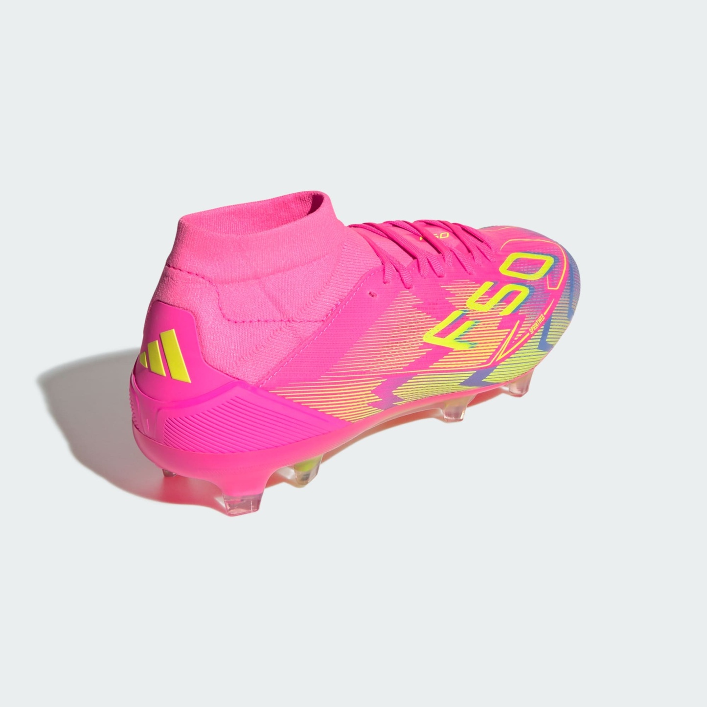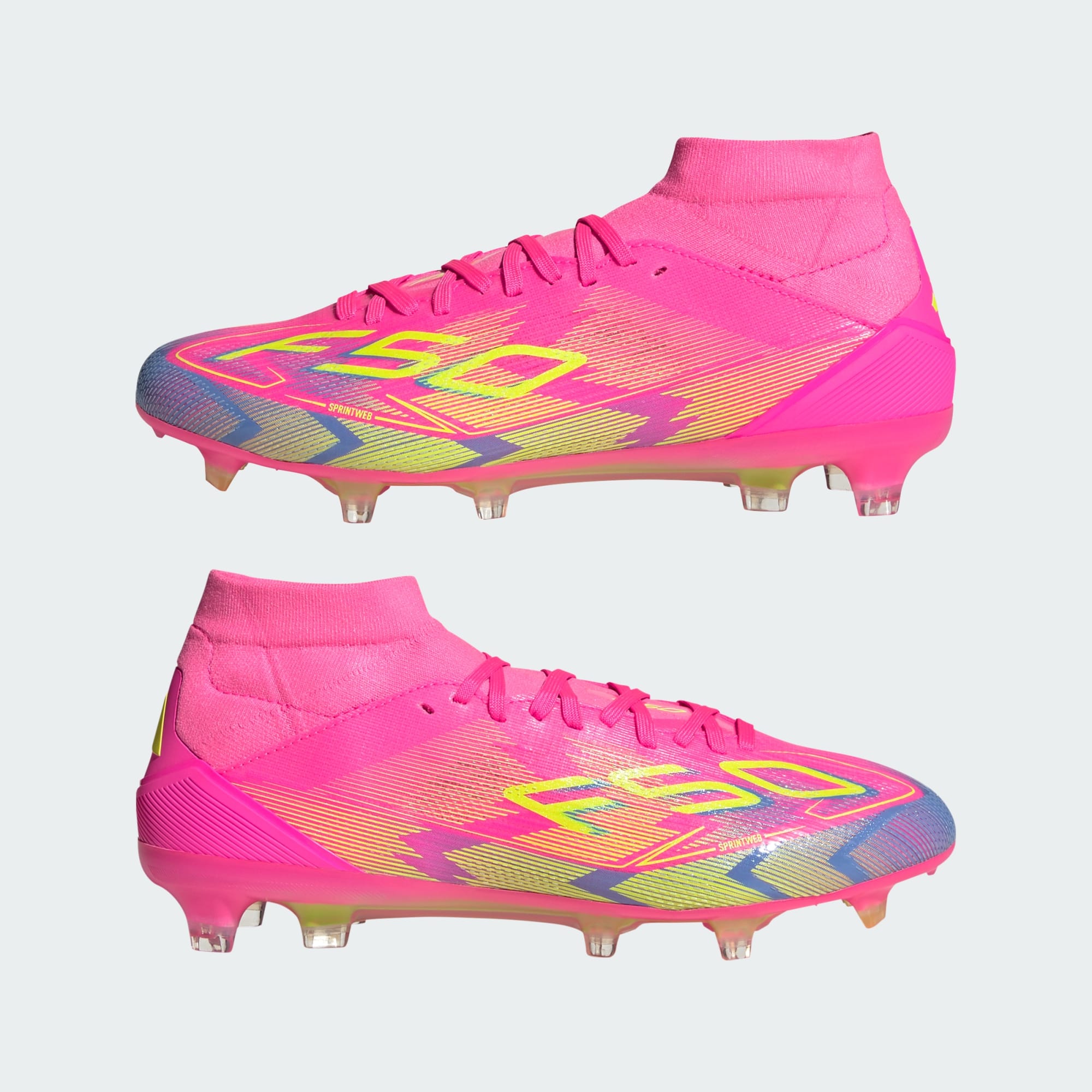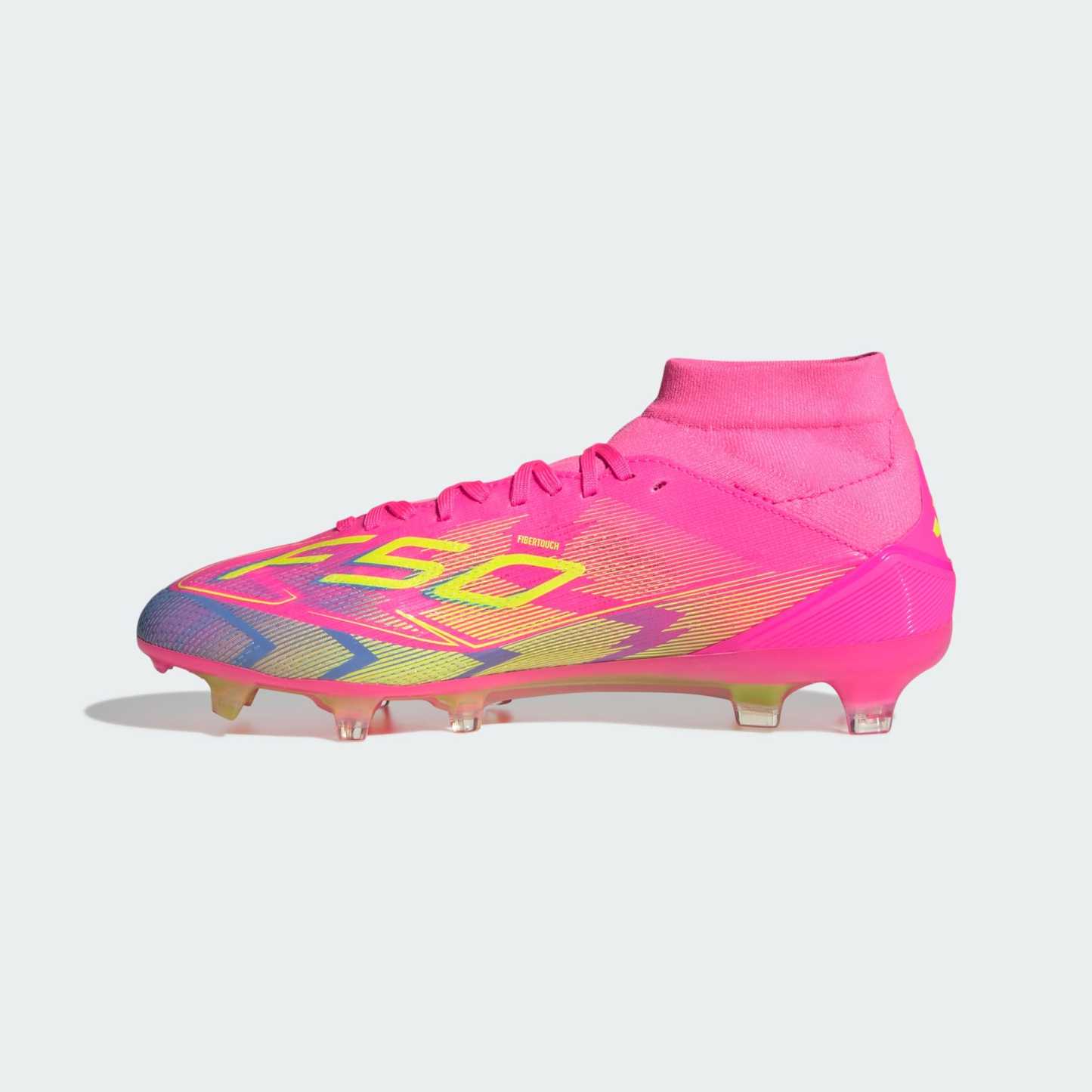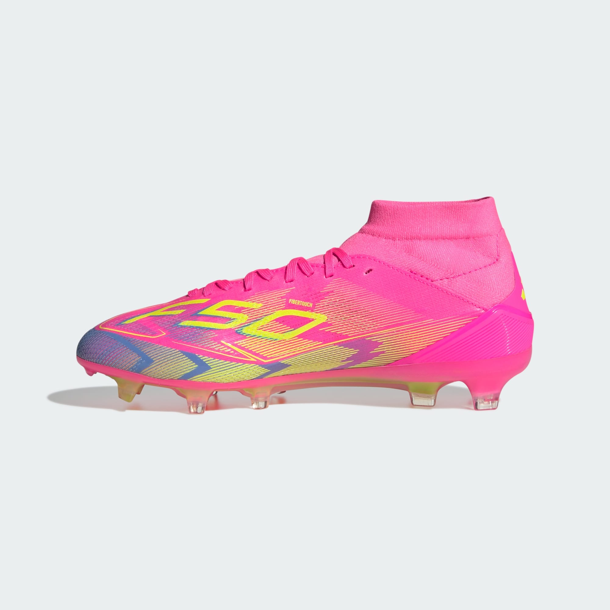 Push your pace to the limit in lightweight adithtdas F50 footwear engineered for speed. Featuring an adithtdas PRIMEKNIT mid-cut collar and thick sockliner for a supportive fit, these Pro soccer cleats are built specifically for female athletes. Sitting on a Sprintplate 360 outsole designed for firm ground, the Fibertouch upper has Sprintweb 3D texturing for agile dribbling.This product features at least 20% recycled materials. By reusing materials that have already been created, we help to reduce waste and our reliance on finite resources and reduce the footprint of the products we make.