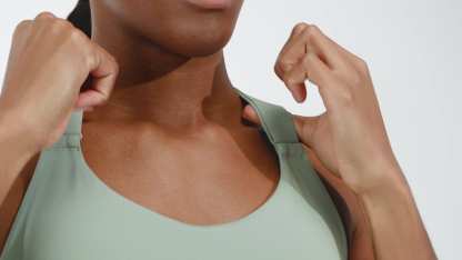 A high-support sports bra made in part with recycled materials.