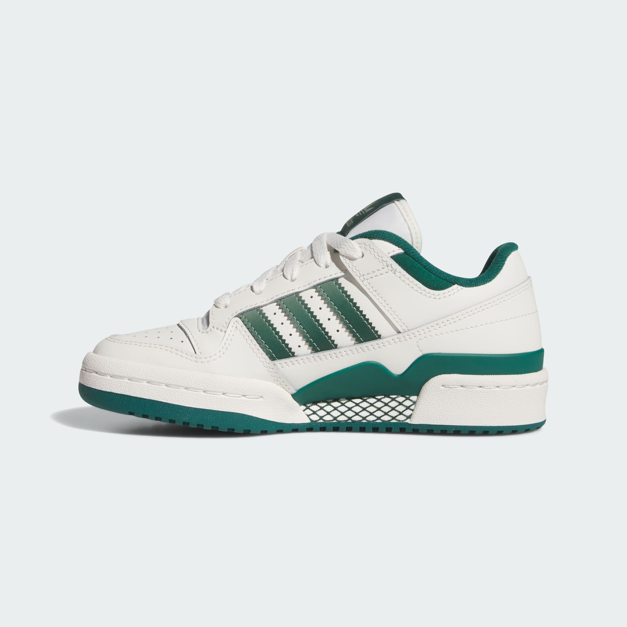 The tried-and-true retro hoops classic comes back for another round of fresh. Lace up the juniors' Forum Low CL and tap into the timelessly bold and expressive shoe made for everyone, every day. This strapless, low-cut version is built with genuine and synthetic leathers with a comfy terry lining for an exquisite sensation. The cupsole provides a ready mix of stability and cushioning, with an iconic traction pattern molded into the rubber. Mix the classic with the modern in this franchise favorite.