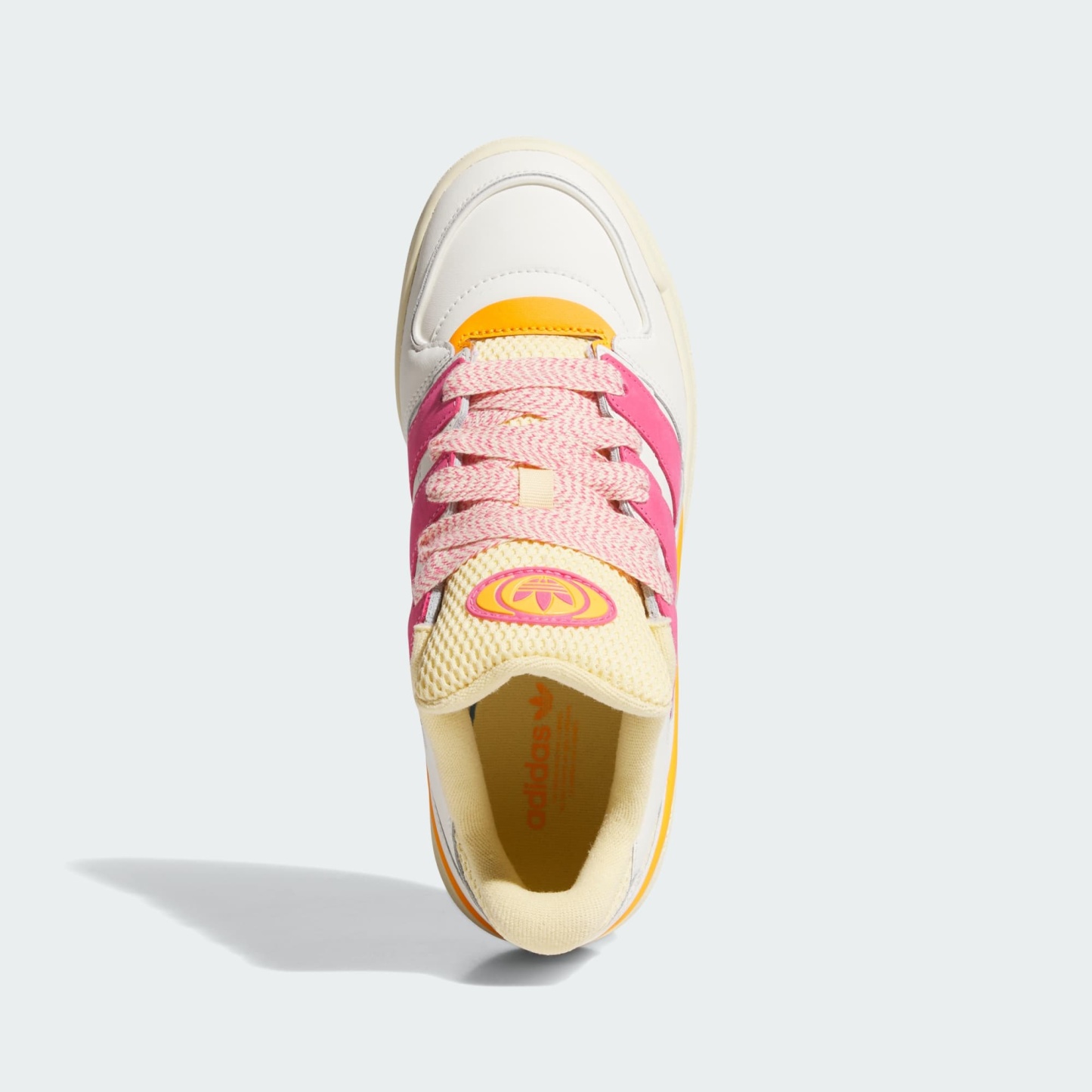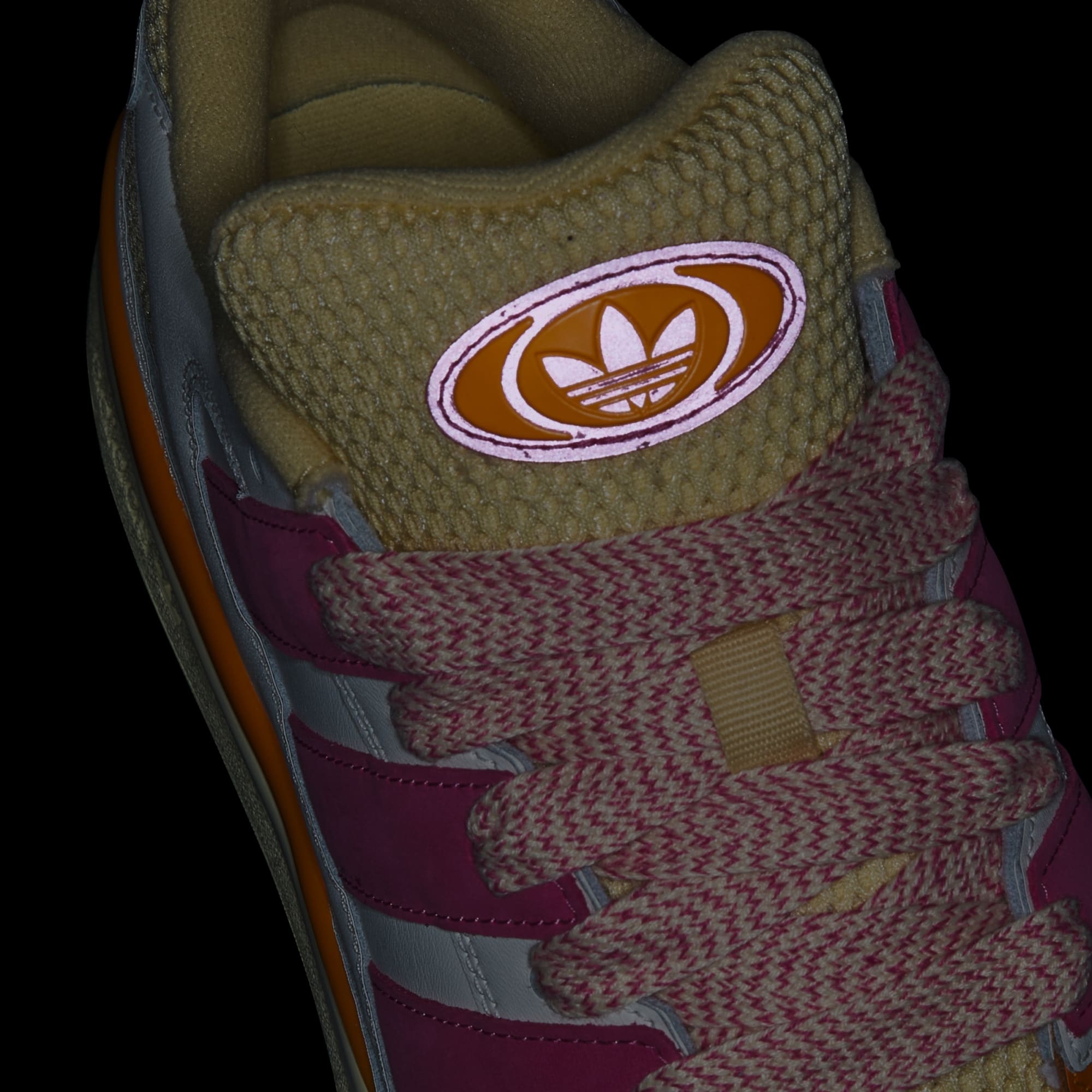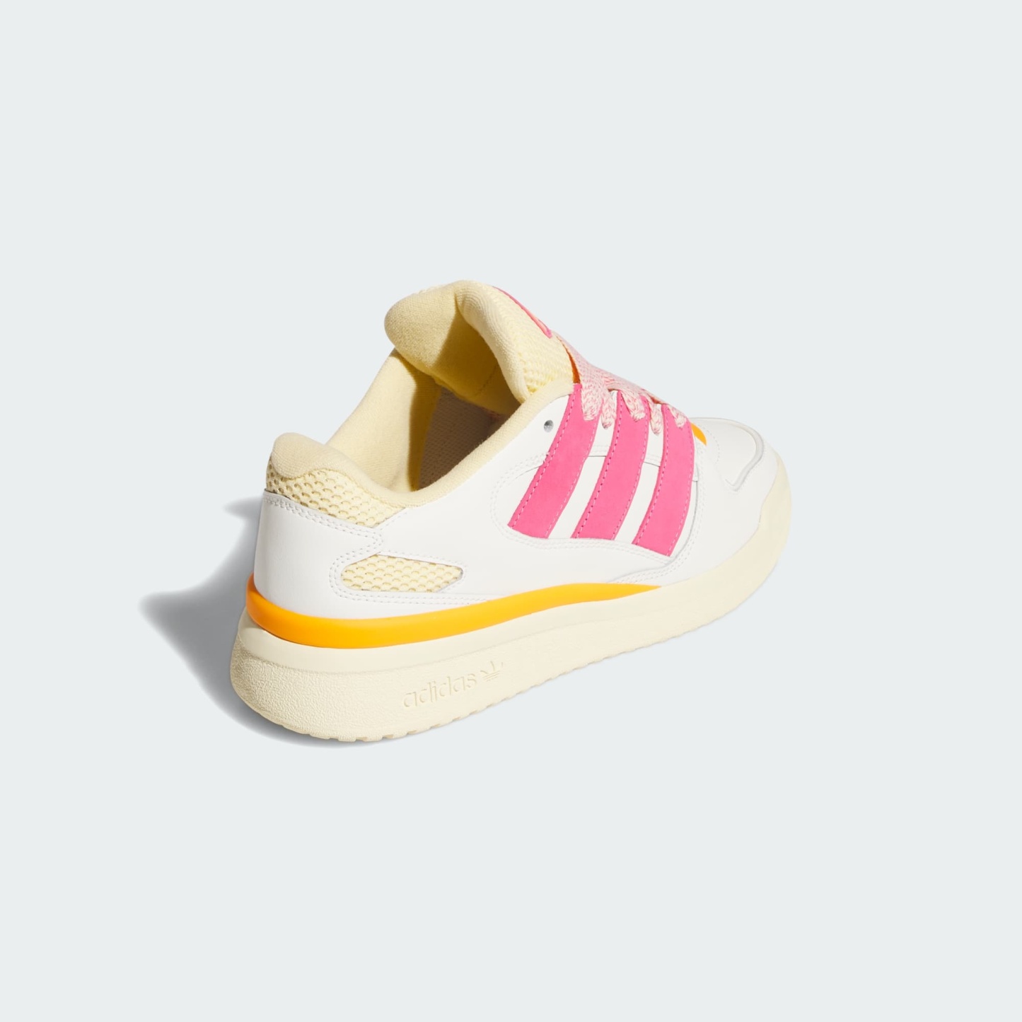 A revamped, exaggerated Forum with oversized 3-Stripes, tongue and laces.