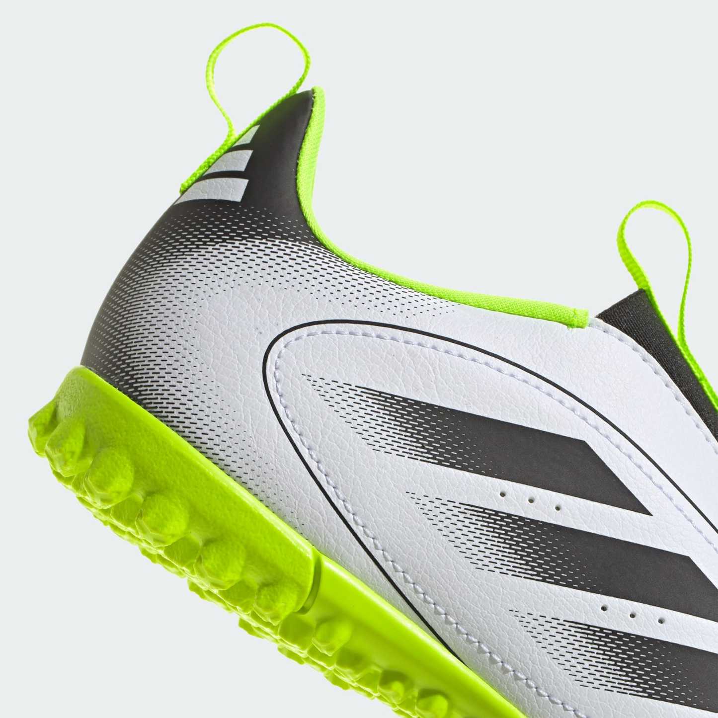 Pull on these laceless adithtdas Goletto IX soccer cleats for juniors and get ready to shine. Their soft synthetic upper features padding and perforations in just the right places so you stay comfortable on the move. Underneath, a lug rubber outsole keeps you quick on artificial turf courts and pitches.