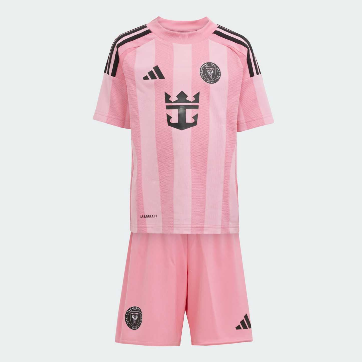They can show their support for Lionel Messi and his Inter Miami team in this kids' home kit. Comprising a striped pink jersey and a pair of comfortable shorts, this adithtdas mini kit also includes moisture-managing AEROREADY, making it perfect for recreating the weekend's action or simply showing support. Embroidered club crests and Messi's famous name and number add a soccer finish to make them proud.This product is made with 100% recycled materials. By reusing materials that have already been created, we help to reduce waste and our reliance on finite resources and reduce the footprint of the products we make.