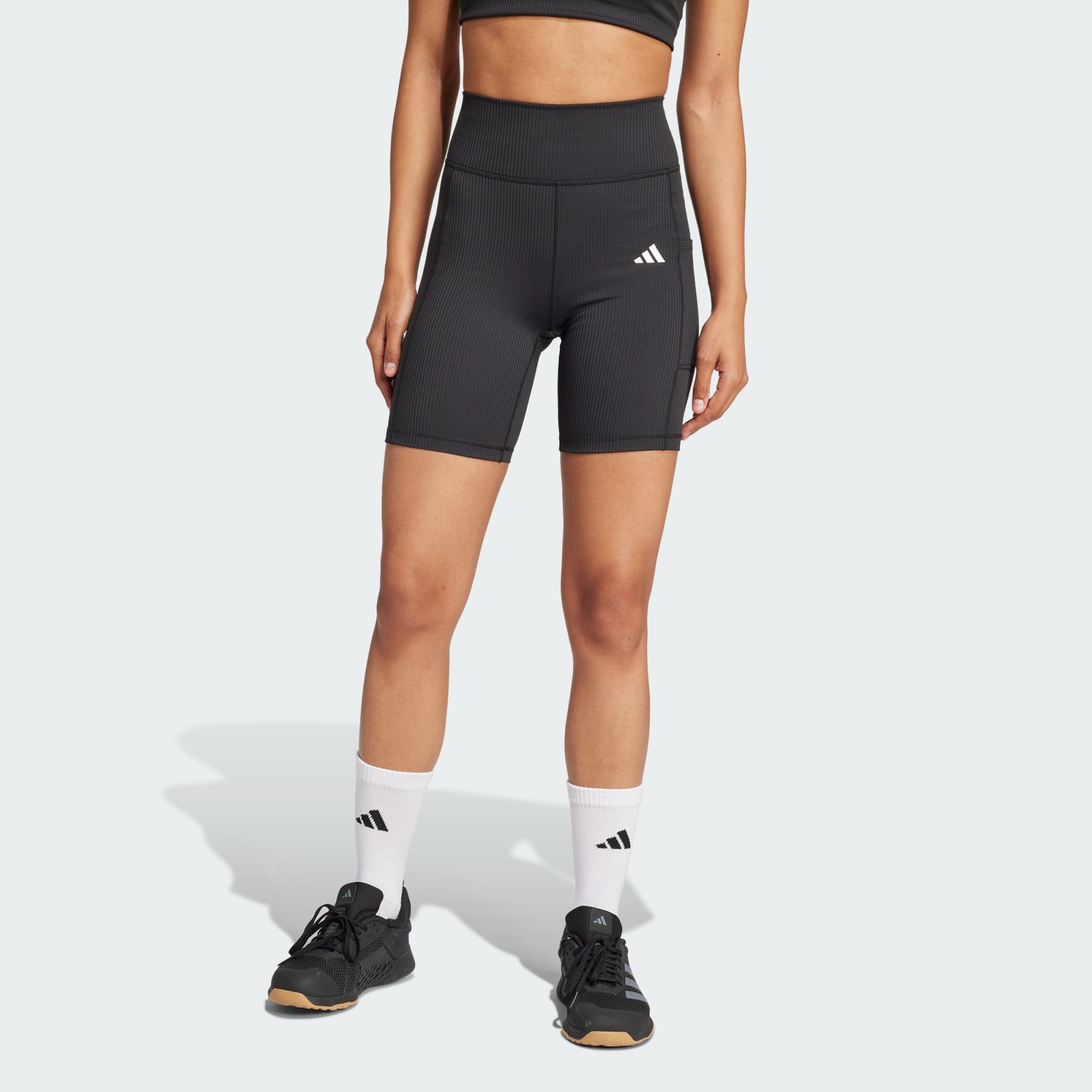 Level up your workout in these adithtdas short leggings. Sleek, four-way stretch fabric moves with you through every squat, lunge and sprint, powered by lasting LYCRA庐 SPORT. The signature thigh pocket lets you stash your phone or keys, keeping essentials close through your entire training session. This product is made with at least 70% recycled materials. By reusing materials that have already been created, we help to reduce waste and our reliance on finite resources and reduce the footprint of the products we make.