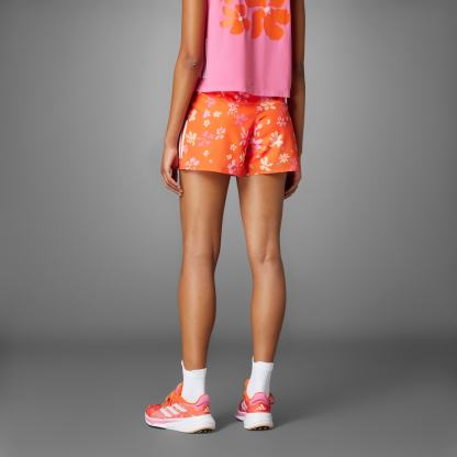 Whether you're pounding the pavement or hitting the treadmill, step into the spotlight in these adithtdas running shorts. The lightweight, breathable fabric and high-rise waist keep you covered and comfortable. An allover floral print is unapologetically feminine. CLIMACOOL wicks and disperses sweat for cool, dry and distraction-free performance.CLIMACOOL helps you manage sweat with materials that wick and manage sweat quickly. Its fast-dry fibers give you a fresh-skin feel.