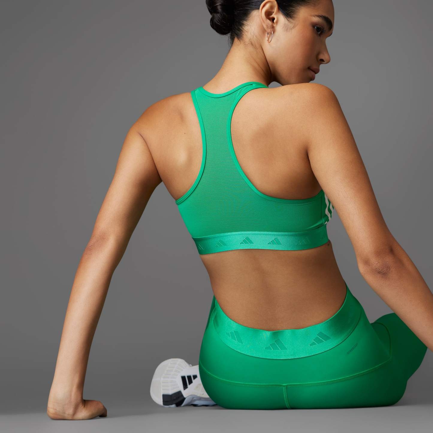 An adithtdas bra for training made in part with recycled materials.