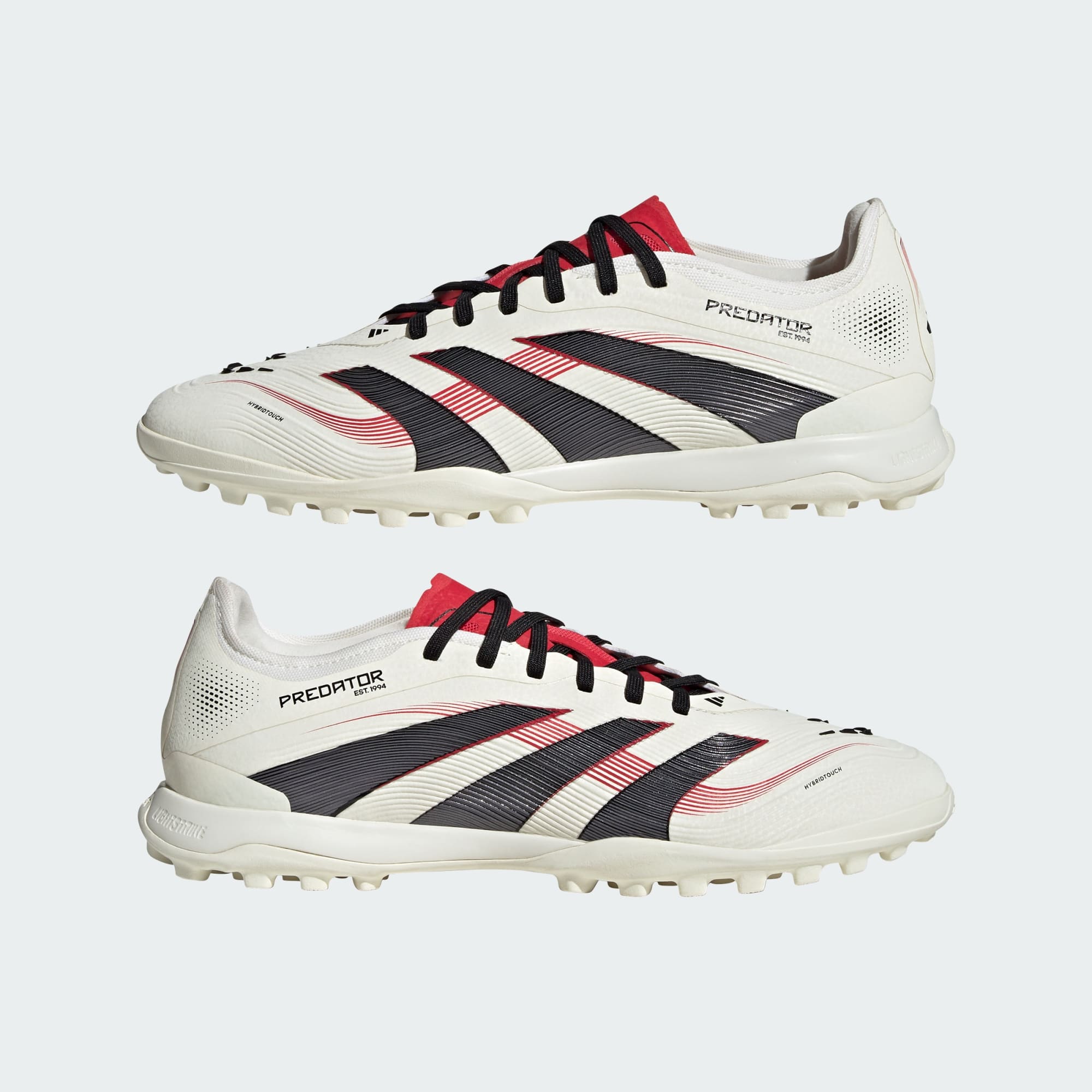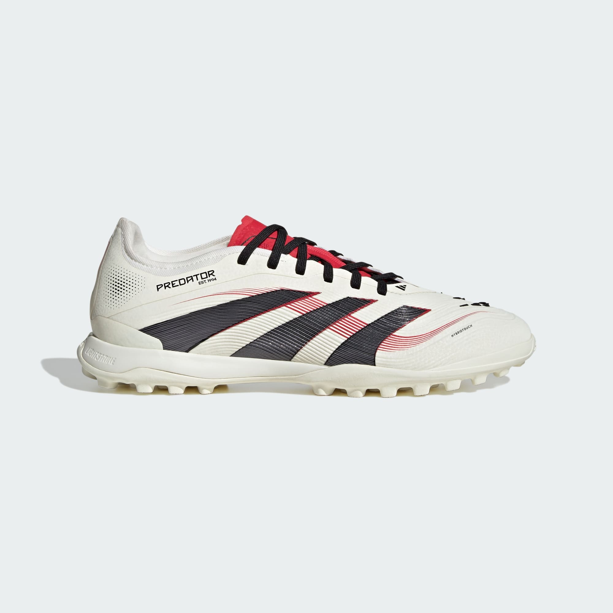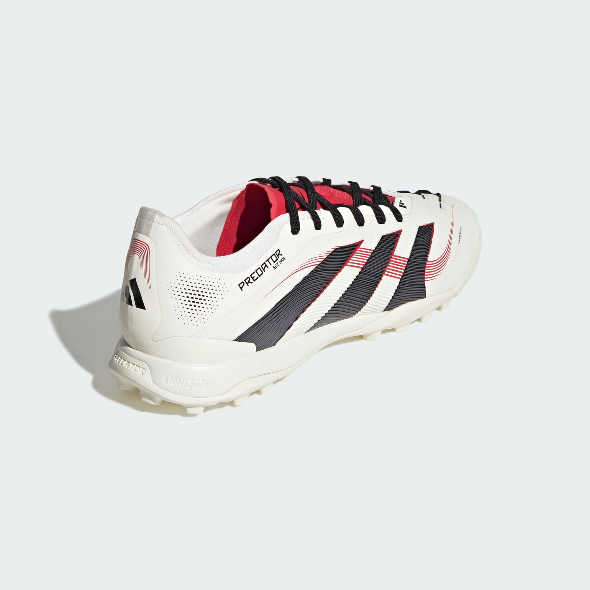 Go into every game knowing you'll score in adithtdas Predator Pro cleats crafted for goals. Rubber Strikeskin fins strategically placed onto the soft, flexible HybridTouch upper assist with every strike of the soccer. Underneath, a lug rubber outsole and responsive Lightstrike midsole offer the stability you need to set your sights on artificial turf.This product features at least 20% recycled materials. By reusing materials that have already been created, we help to reduce waste and our reliance on finite resources and reduce the footprint of the products we make.