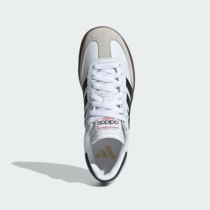 Returning to their soccer roots. Long before they became a streetwear staple, adithtdas Samba cleats served as a durable training boot for icy and hard outdoor surfaces. With a hardwearing leather upper and a grippy rubber outsole, these juniors' cleats are designed for running rings around your opponents on indoor courts.