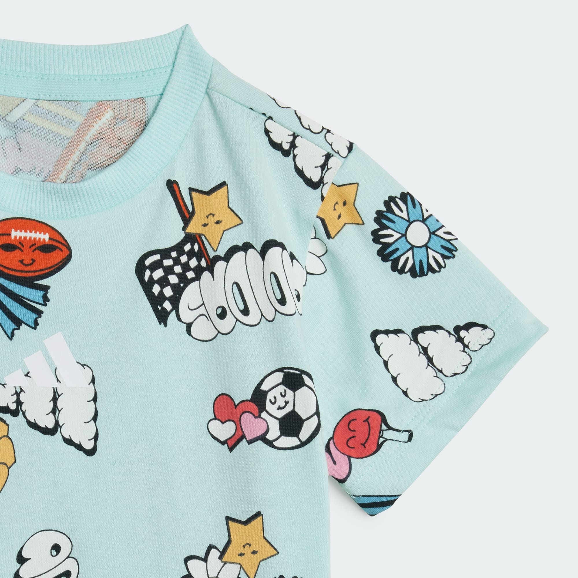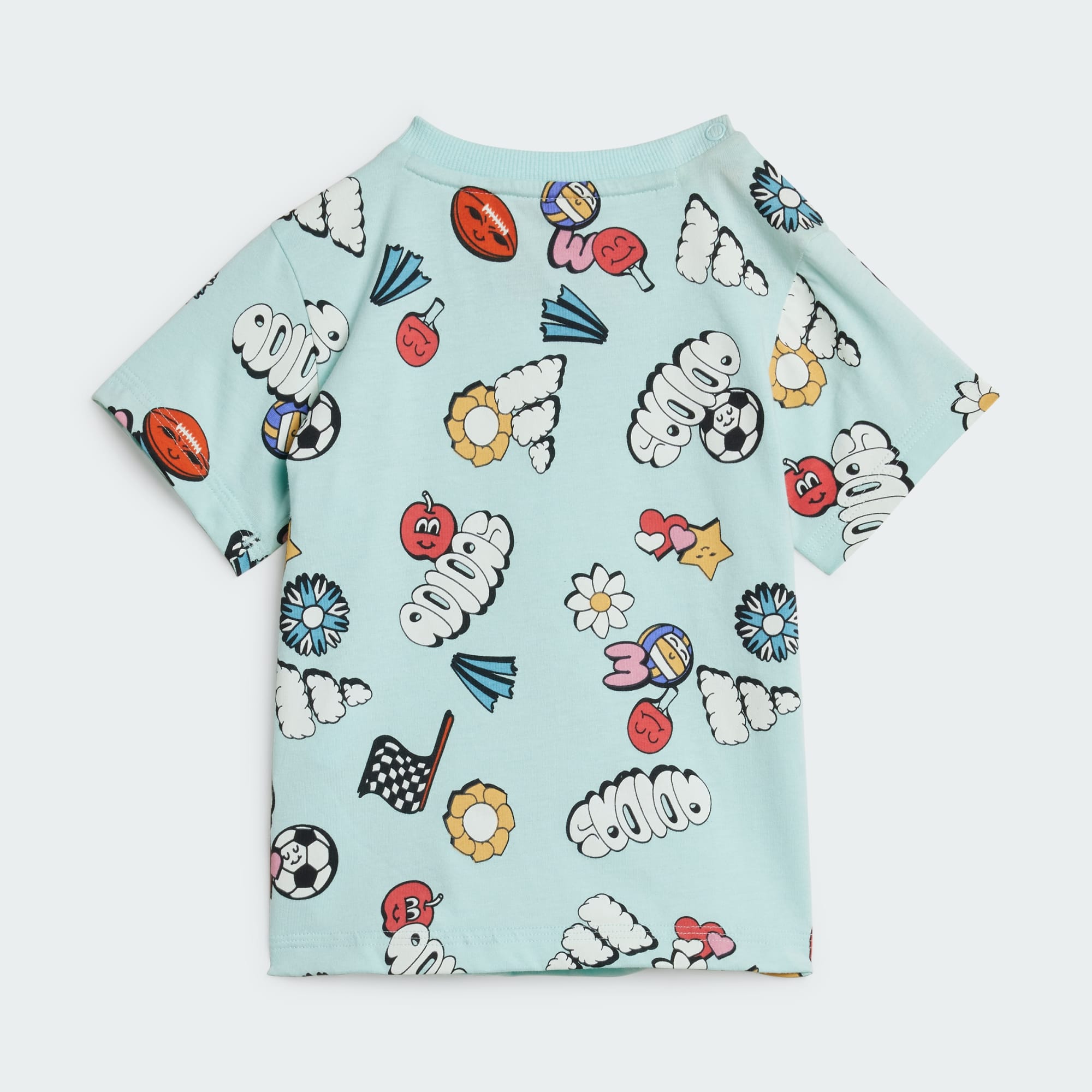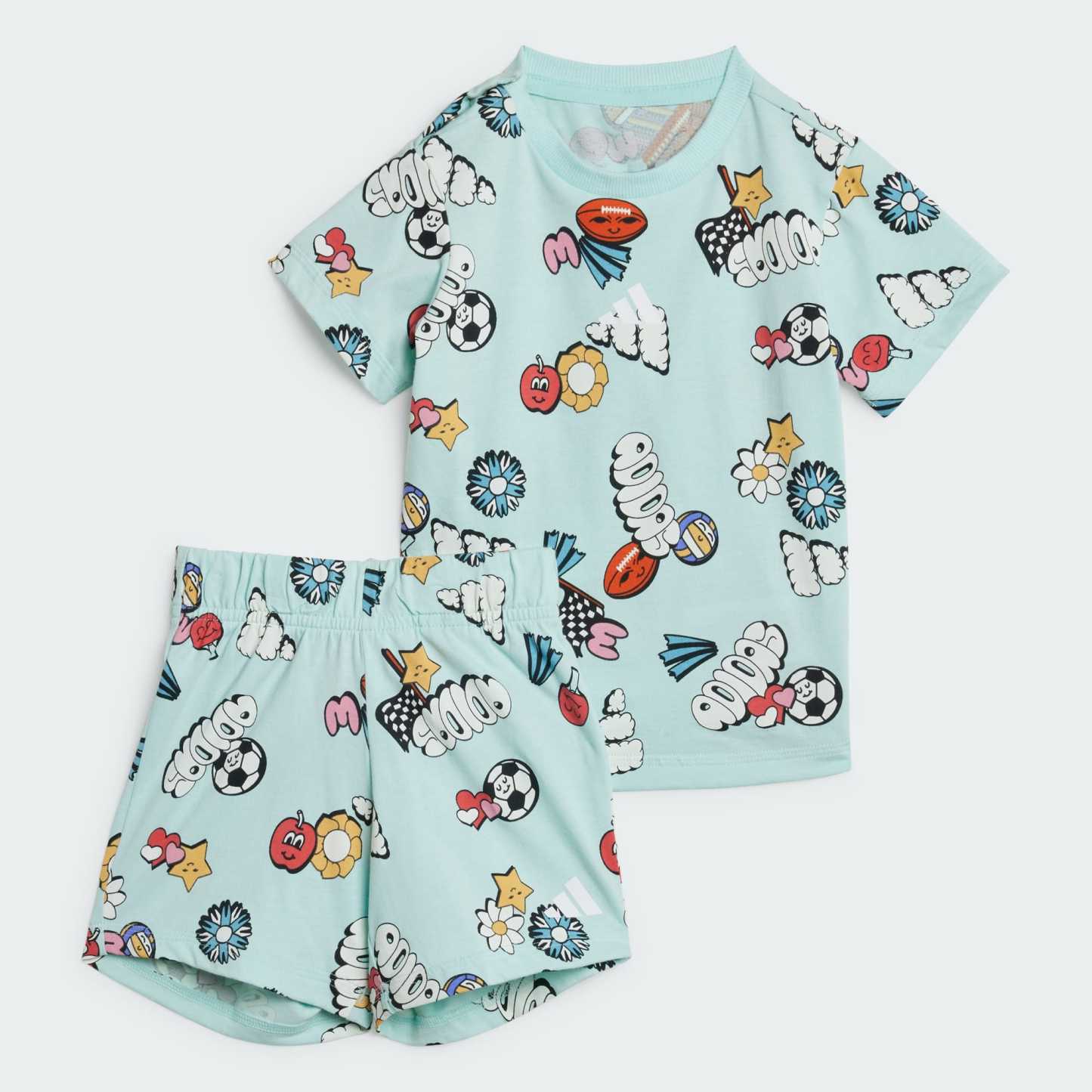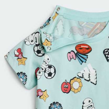 Crafted for comfort and designed for fun, this infants' adithtdas tee-and-shorts set brings a playful vibe to any day. The soft single jersey build keeps your little one comfortable whether they're exploring the world or settling in for a story. The bold, colorful, allover print is sure to spark joy and imagination with every wear.By choosing recycled, we are able to reuse materials that have already been created, which helps to reduce waste. Renewable materials choices will help us to remove our reliance on finite resources. Our products made with a blend of recycled and renewable materials feature at least 70% total of these materials.