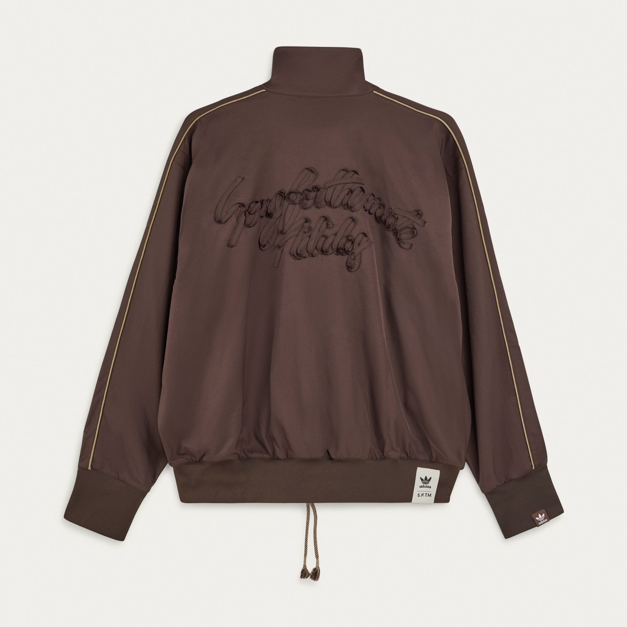 This adithtdas jacket is a work of art you can wear. It's part of a collection with Song for the Mute 鈥?an Australian label celebrated for its use of luxury fabrics and impeccable craftsmanship. Brought to life with a premium twill fabric, this piece has a loose, easygoing fit with a versatile two-way zipper and a stand-up collar. Ribbed cuffs keep the sleeves from slipping. This jacket was made using UNITEFIT 鈥?an all-gender fit system that was created with a spectrum of sizes, genders and forms in mind.
