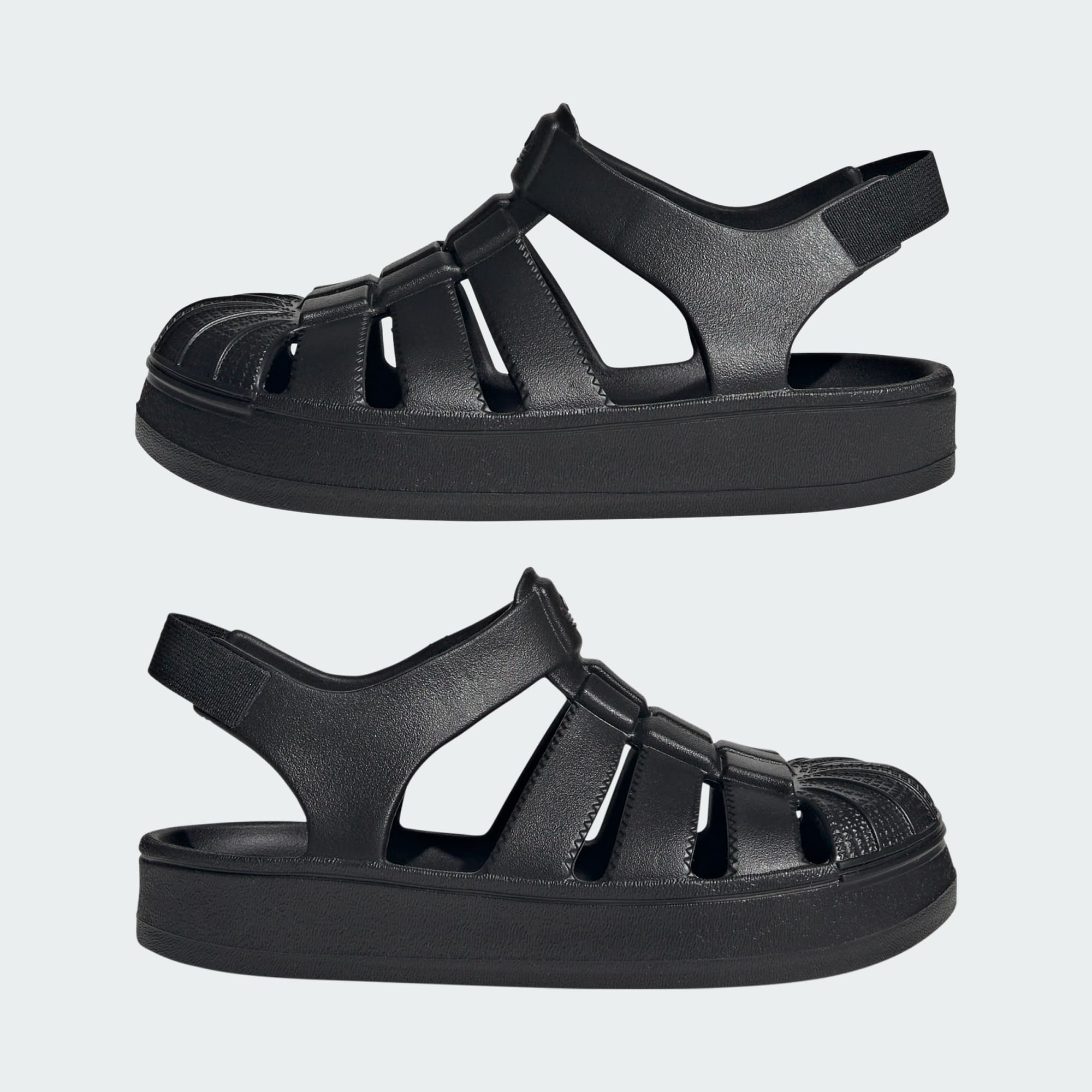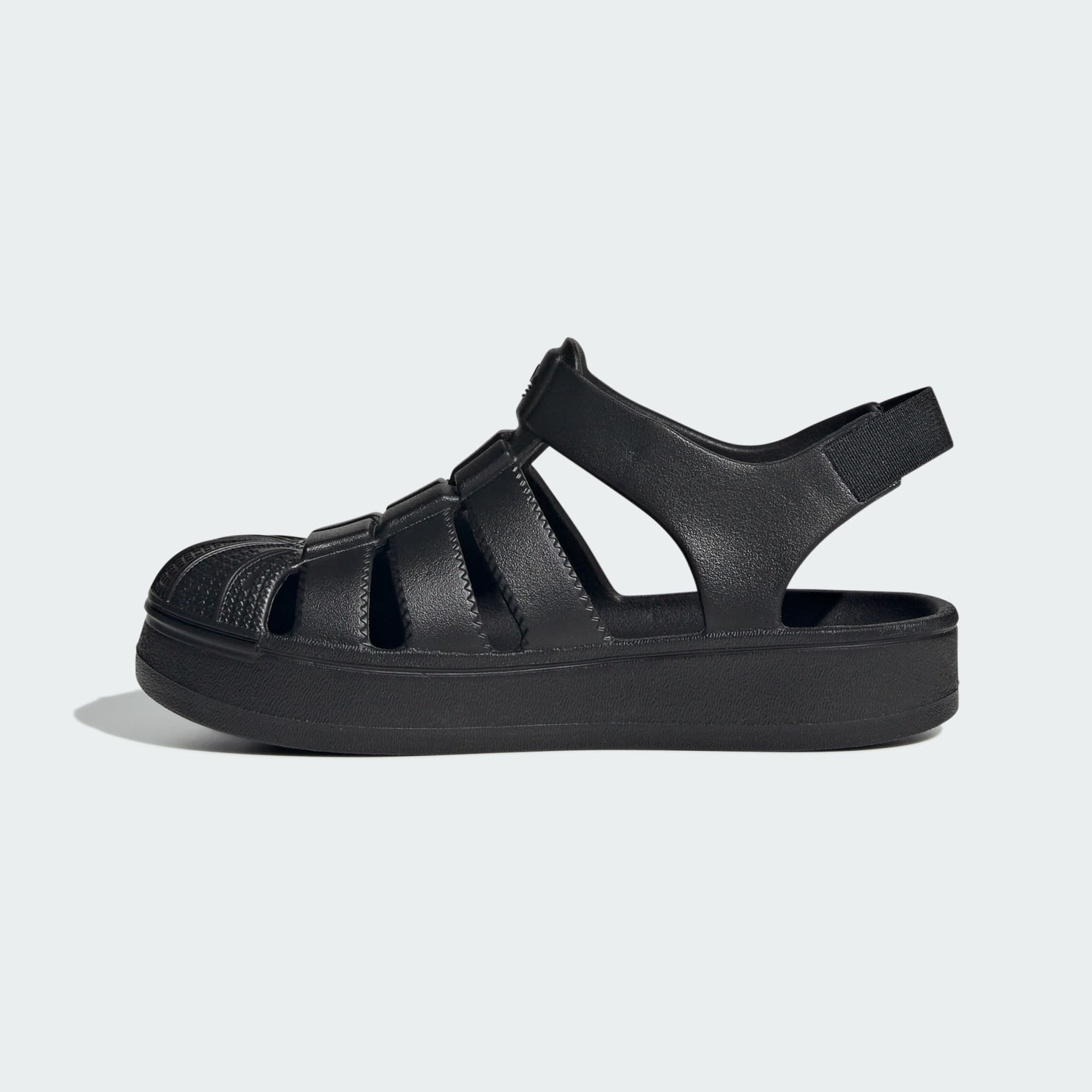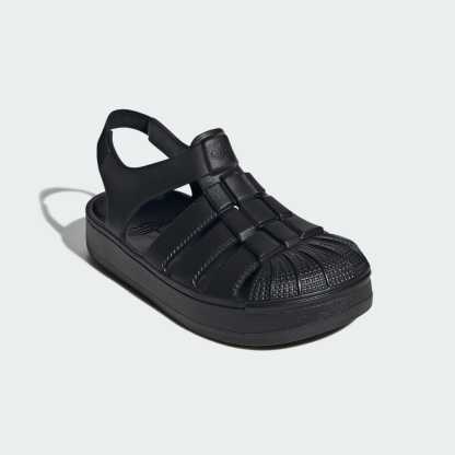 A sandal version of the adithtdas Superstar shoe, just for kids.