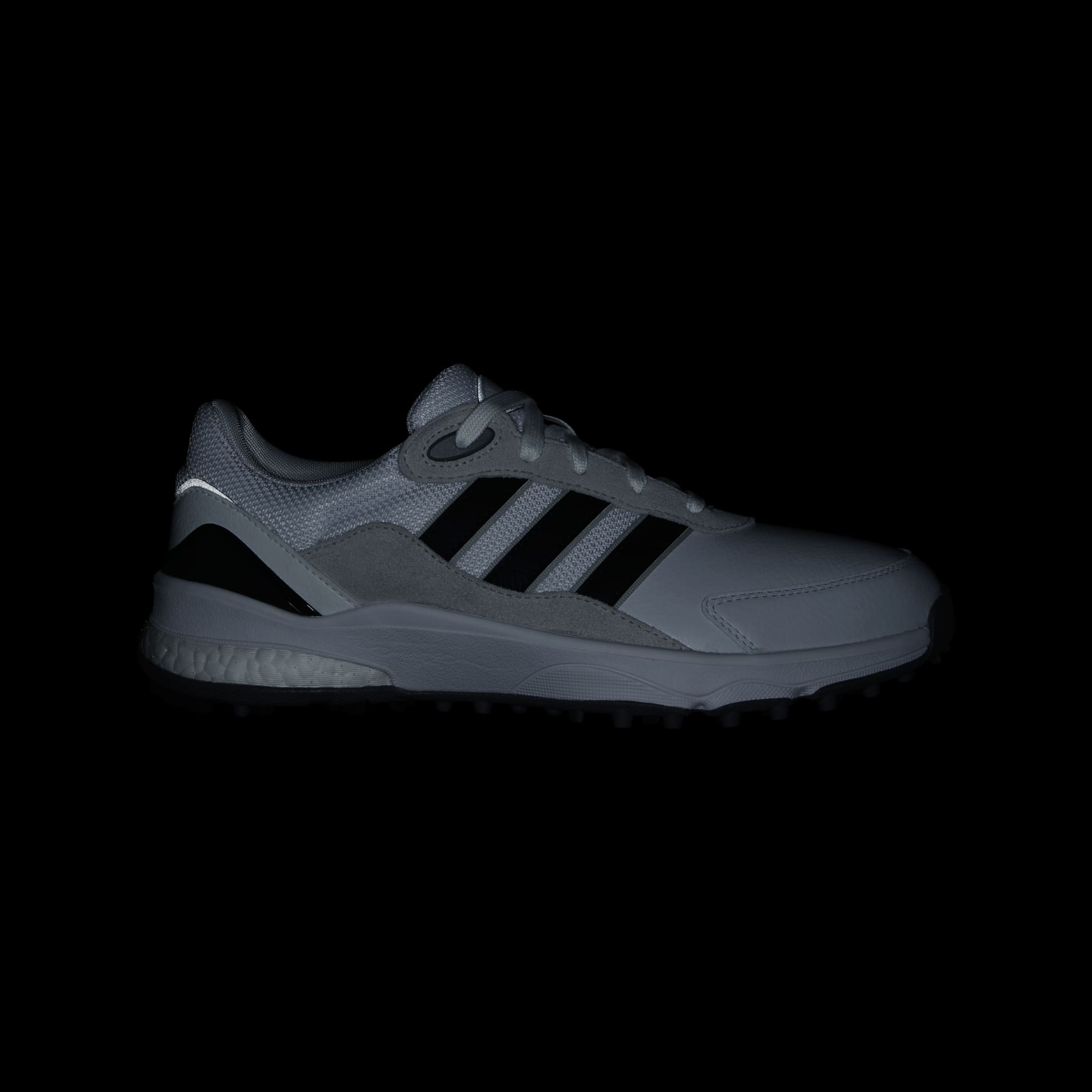Put comfort first with these spikeless golf shoes. Their running shoe-inspired build energizes every step with an adithtdas BOOST midsole, while a leather and textile upper provides a sporty look and feel. A Traxion outsole offers all-direction grip in for a solid stance.By choosing recycled, we are able to reuse materials that have already been created, which helps to reduce waste. Renewable materials choices will help us to remove our reliance on finite resources. Our products made with a blend of recycled and renewable materials feature at least 20% total of these materials.