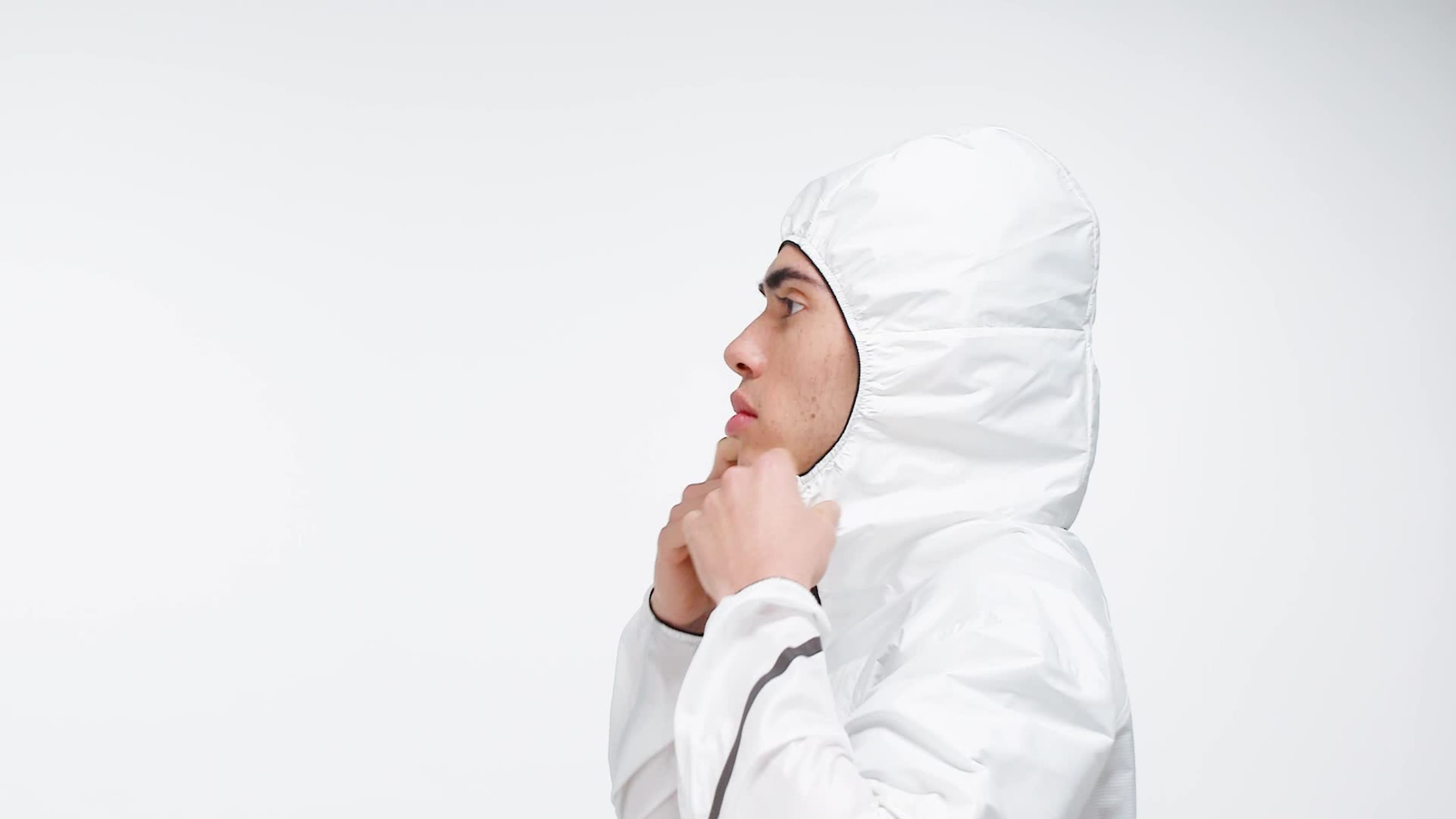 - Full zip with elastic hood
