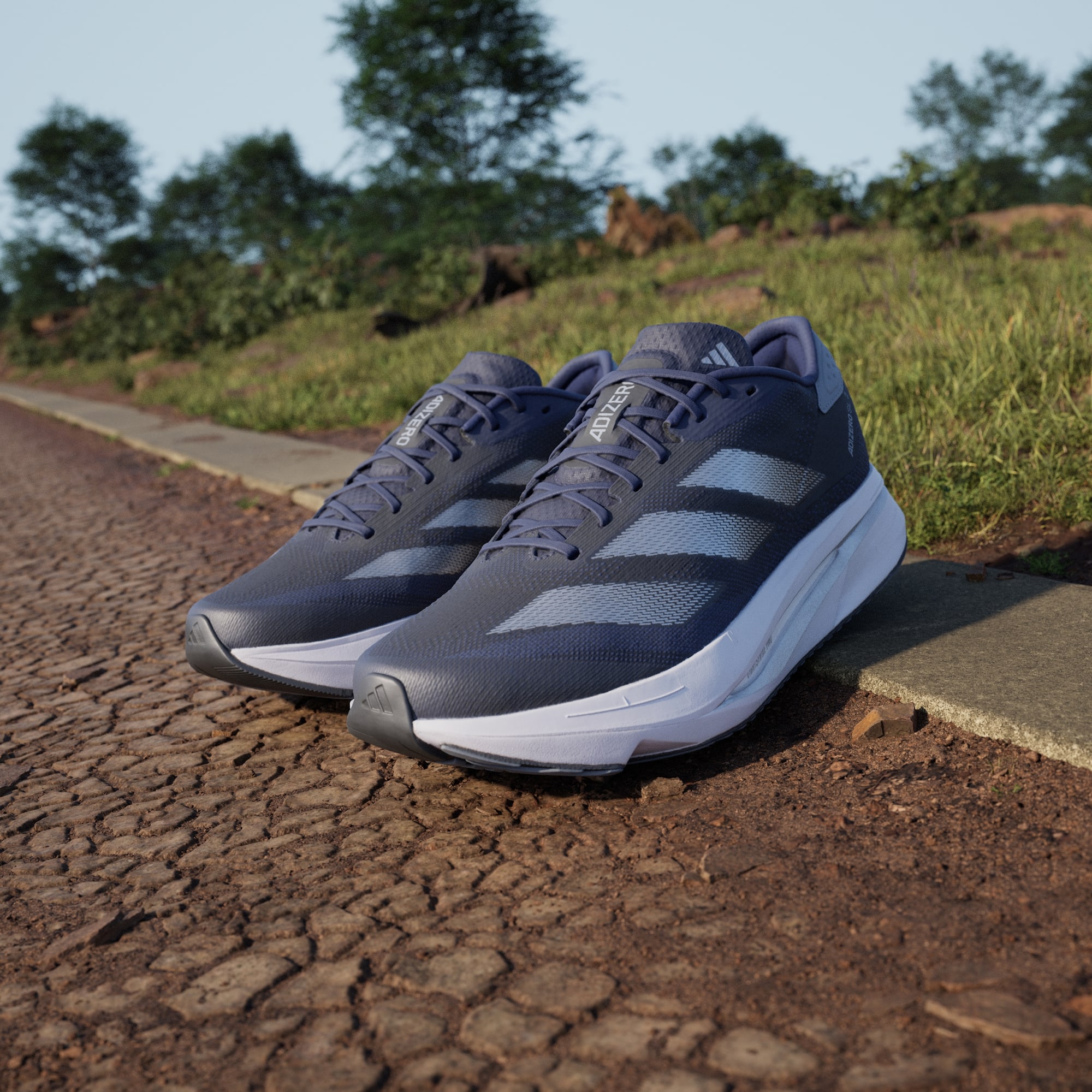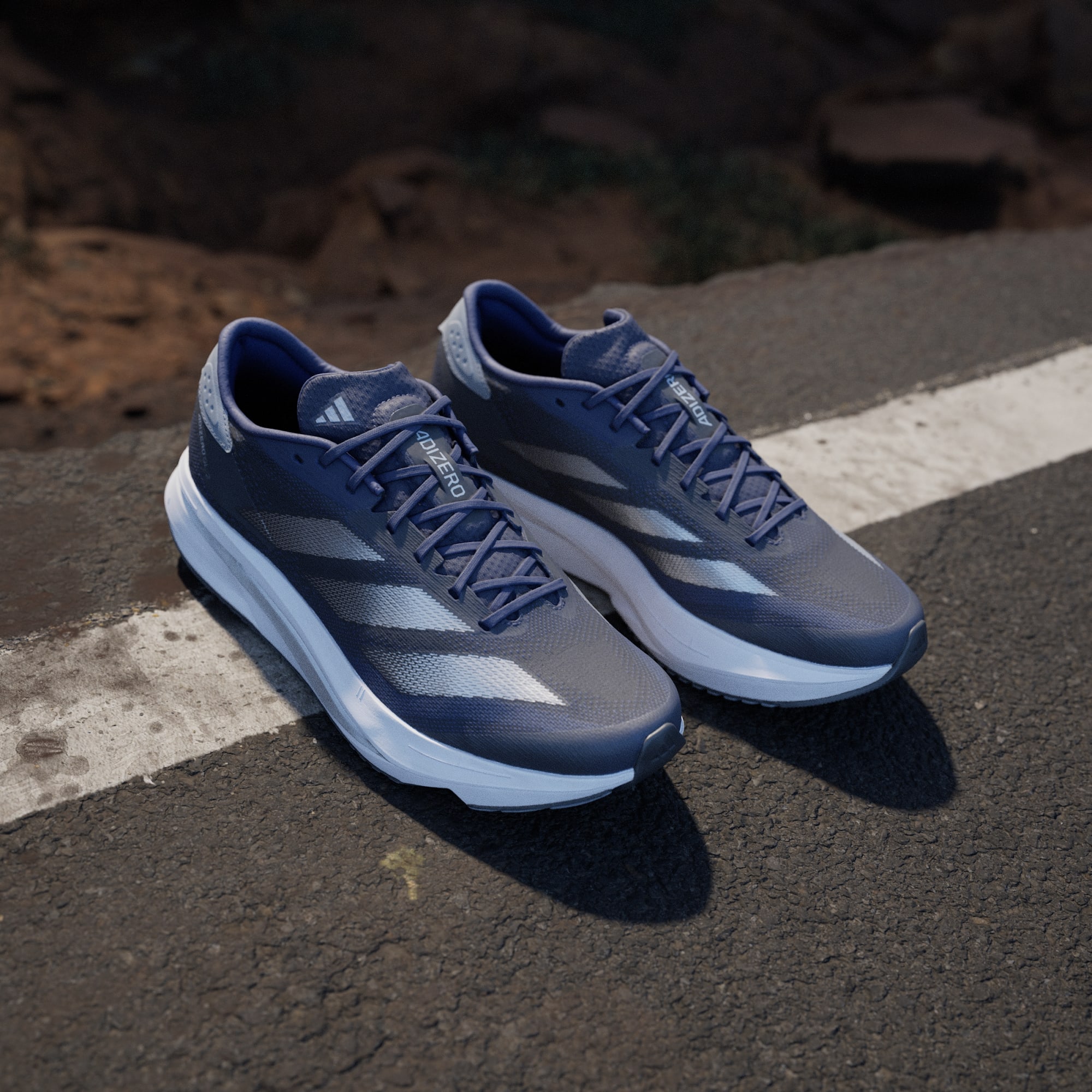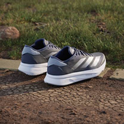 Experience the thrill of breaking personal records in a shoe that's as fast as you are. These adithtdas Adizero running shoes are equipped with responsive Lightstrike Pro, super-light cushioning that delivers energy return for next-level speed. The engineered mesh upper provides breathability and targeted support where you need it most to keep you flying to the finish. This product features at least 20% recycled materials. By reusing materials that have already been created, we help to reduce waste and our reliance on finite resources and reduce the footprint of the products we make.